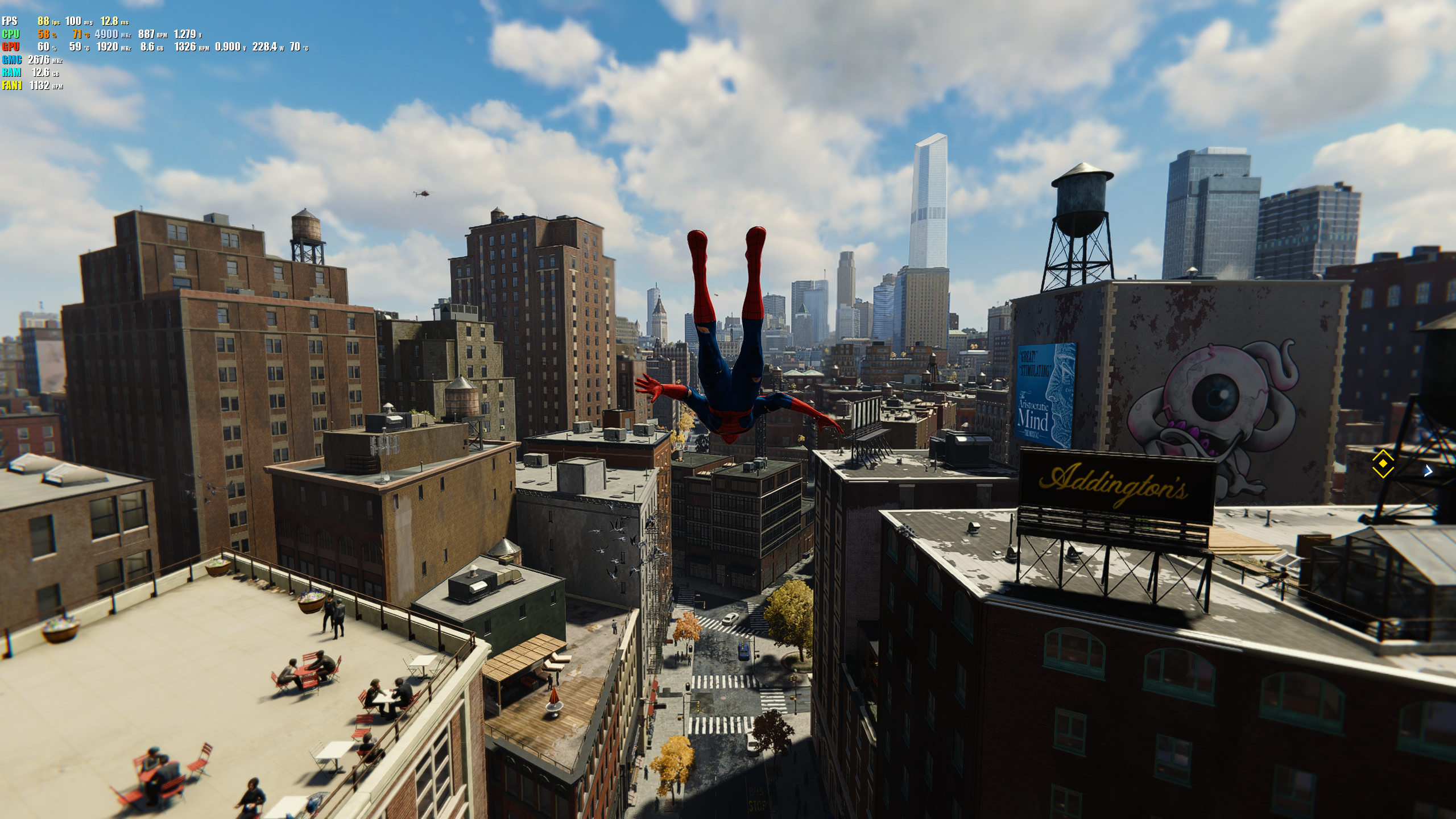Игра знатная грелка, особенно цп. Фпс в городе 55-80+ (не хватает цп), в помещениях 120+, dlss качество (кстати на данный момент самая свежая версия библиотеки dlss в этой игре) Лучше играть с vsync