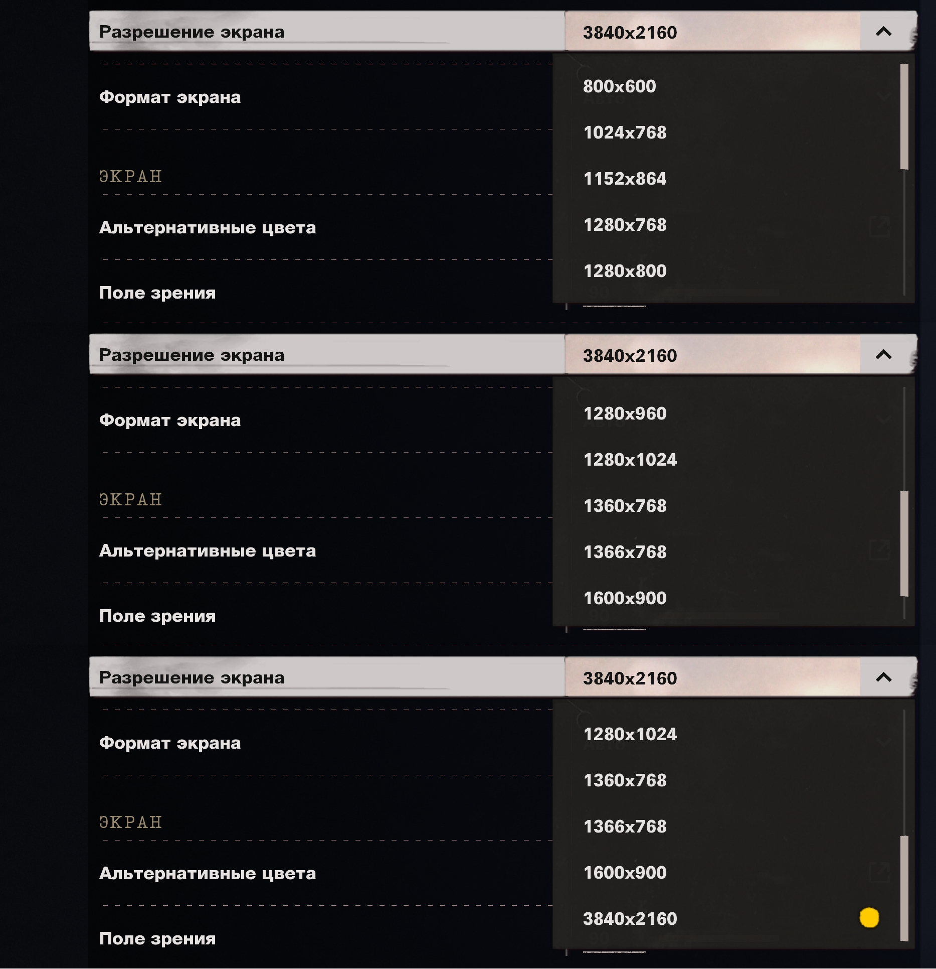 - как видишь, даже FHD не предлагается - не то что 2К. Естественно, в качестве базового приходится выбирать 3840х2160; выбиранное при этом значение разрешения визуализации 66% наиболее близко соответствует 2К (с соответствующим пониженным качеством графики самой игры - но также и с сохранением разрешения интерфейса стандарта 4К; это удобно по двум причинам: высокий fps и адекватные размеры шрифтов, соответствующие 4К разрешению). Если включаю разрешение визуализации 100% - фпс при среднем и выше сглаживании SMAA проседает на ~50к/с (с ~144 до ~90; впрочем, возможно просадка и больше: т.к. ограничил в игре фпс на уровне 144); здесь интересный момент с выбором DLSS в качестве метода сглаживания: если в 2К (т.е. при разрешении визуализации 66%) его включение приводит к просадке фпс - то в 4К (100% р/в) - напротив - фпс повышается по сравнению с SMAA! А прикол вот в чём: