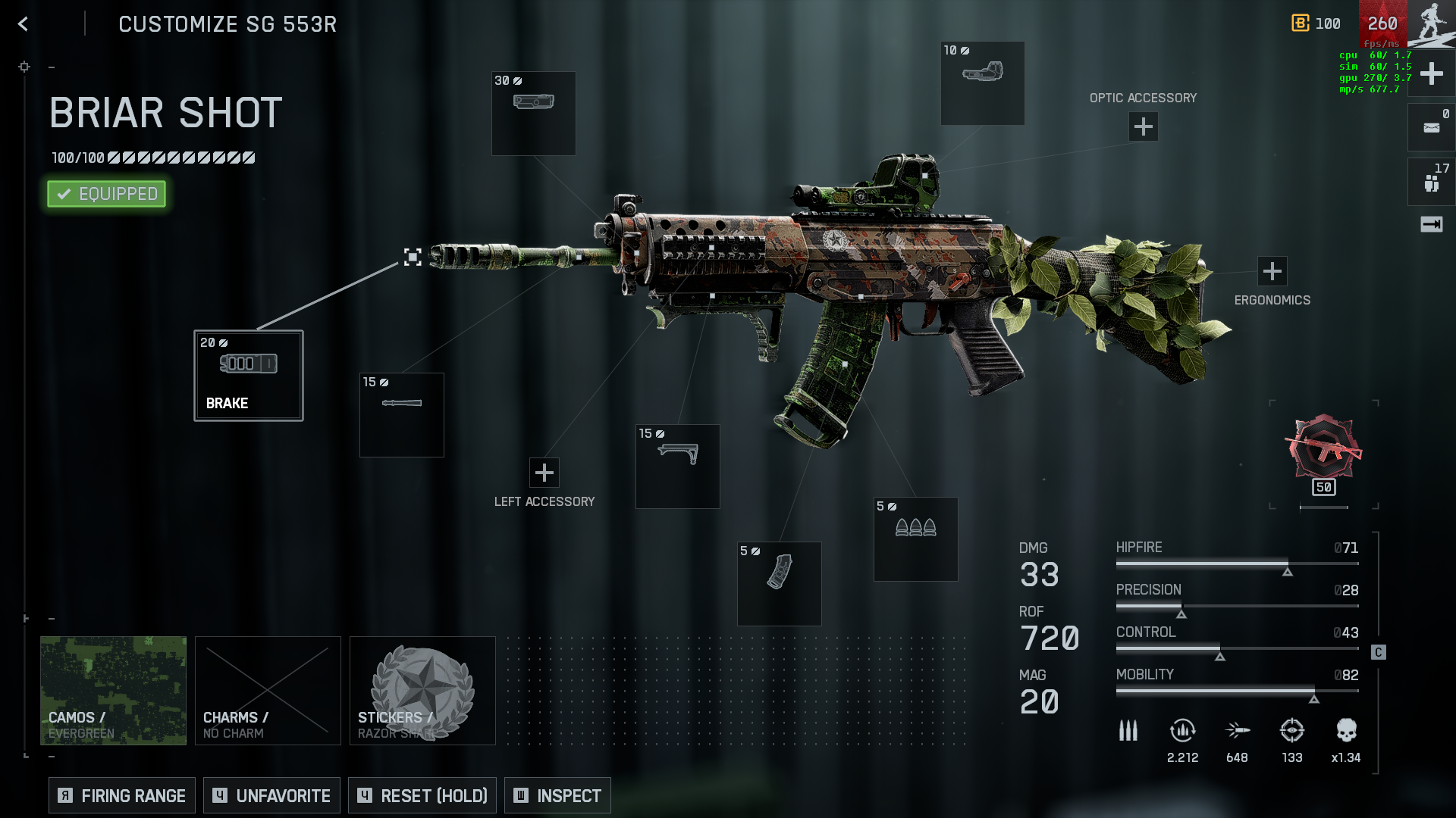 странная сборка. Экстендет ствол ему не нужен вообще, потому что на дистанции сильно режется дамаг. С этой ручкой оружие точно не будет лазером. Дорогой лазер не имеет никакого смысла - от бедра СГ все равно не работает. Дефолтный магазин - мелкий и долгая перезарядка.