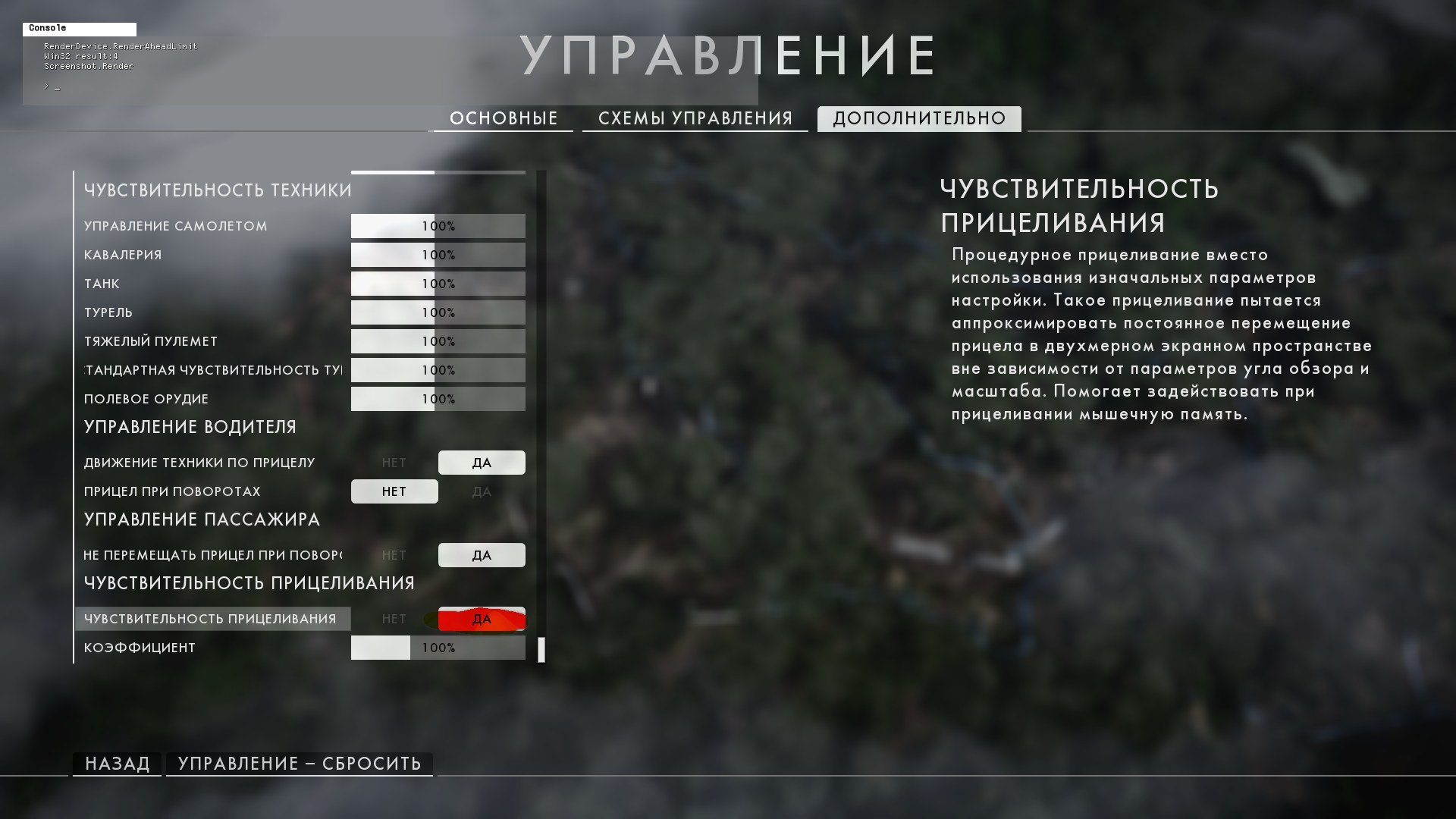 *Показ отладочной информации, в том числе о текущем разрешении рендера (Internal: X)Нажать ~ (т.е. открыть консоль) и ввести Render.DrawScreenInfo 1 - * У кого мерцает меню(не sli), - включите в настройках не полный экран, а оконный без рамок, должно помочь *Родное разрешение рендеринга (1 к 1) это Resolution Scale выставленный на 100%.