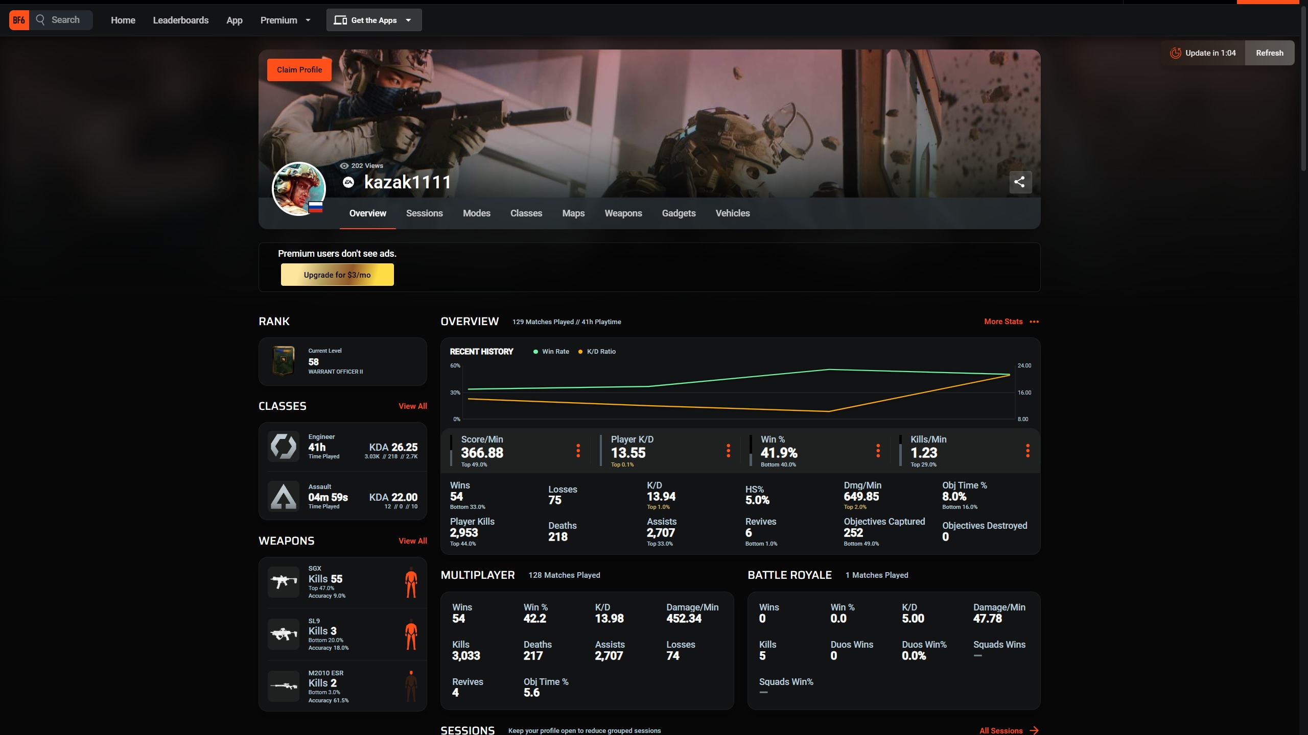 убедись еще раз, что профиль не приватный и смотри статистику на tracker.gg/bf6 - будет проще увидеть закономерность, потому что есть данные по отдельным играм.
