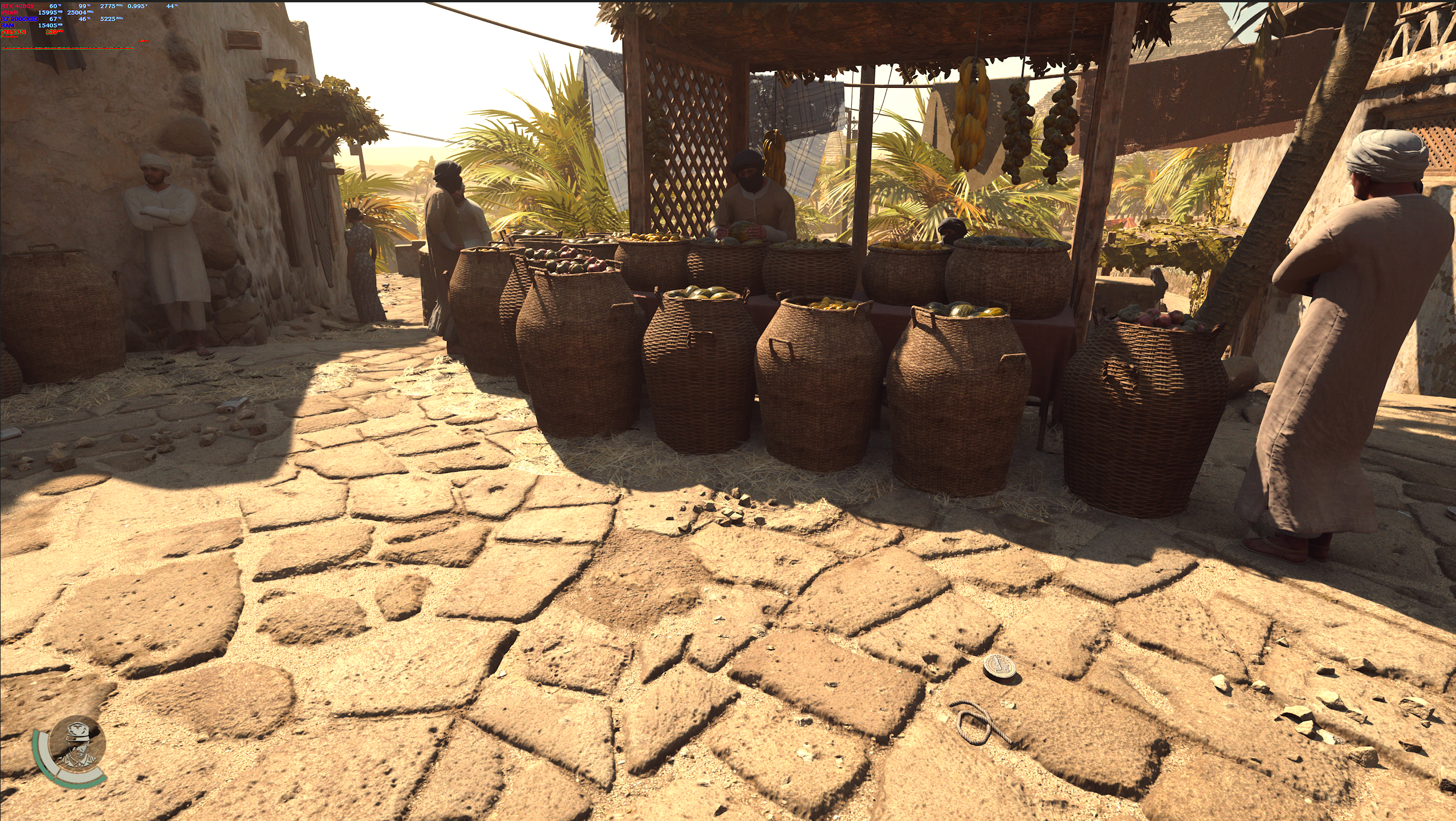 Пул на среднем, в Гизе иногда было видно подгрузку текстур, наверное из за того, что локация большая. В Гималаях уже нет. В Ватикане не обращал внимания, вроде не было подгрузок.