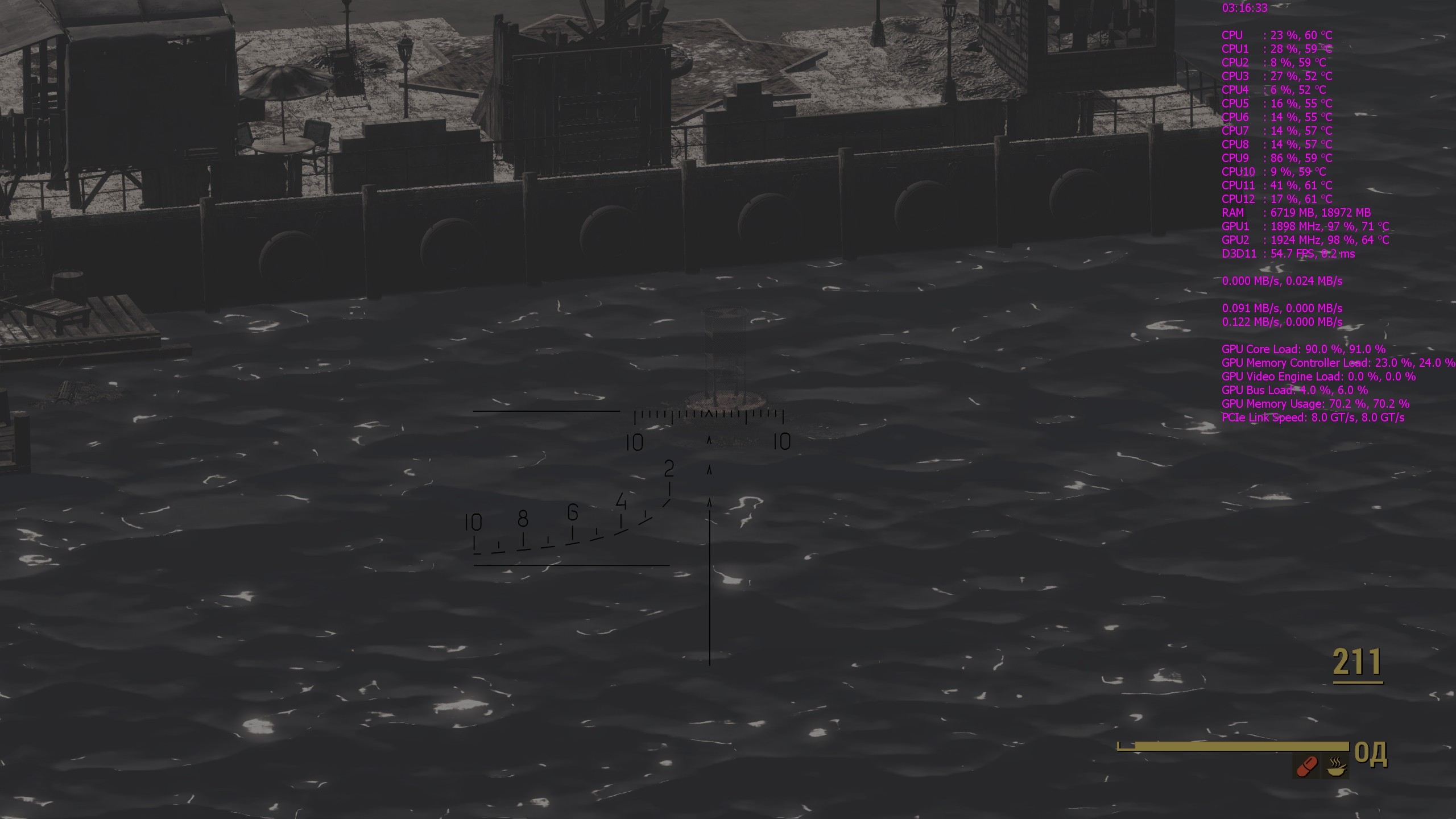 Попробовал поставить нвидиевское убежище, так оно сломало русский язык, сейвы теперь называются по английски. Выключил мод. У кого видеокарта простаивает, для тех есть мод, описание по-русски http://gamer-mods.ru/load/fallout_4/gra ... 9-1-0-4540 Он же на нексусе. 30 фпс это норма! Но да, красиво, сразу как-то все становится более живым и натуральным.