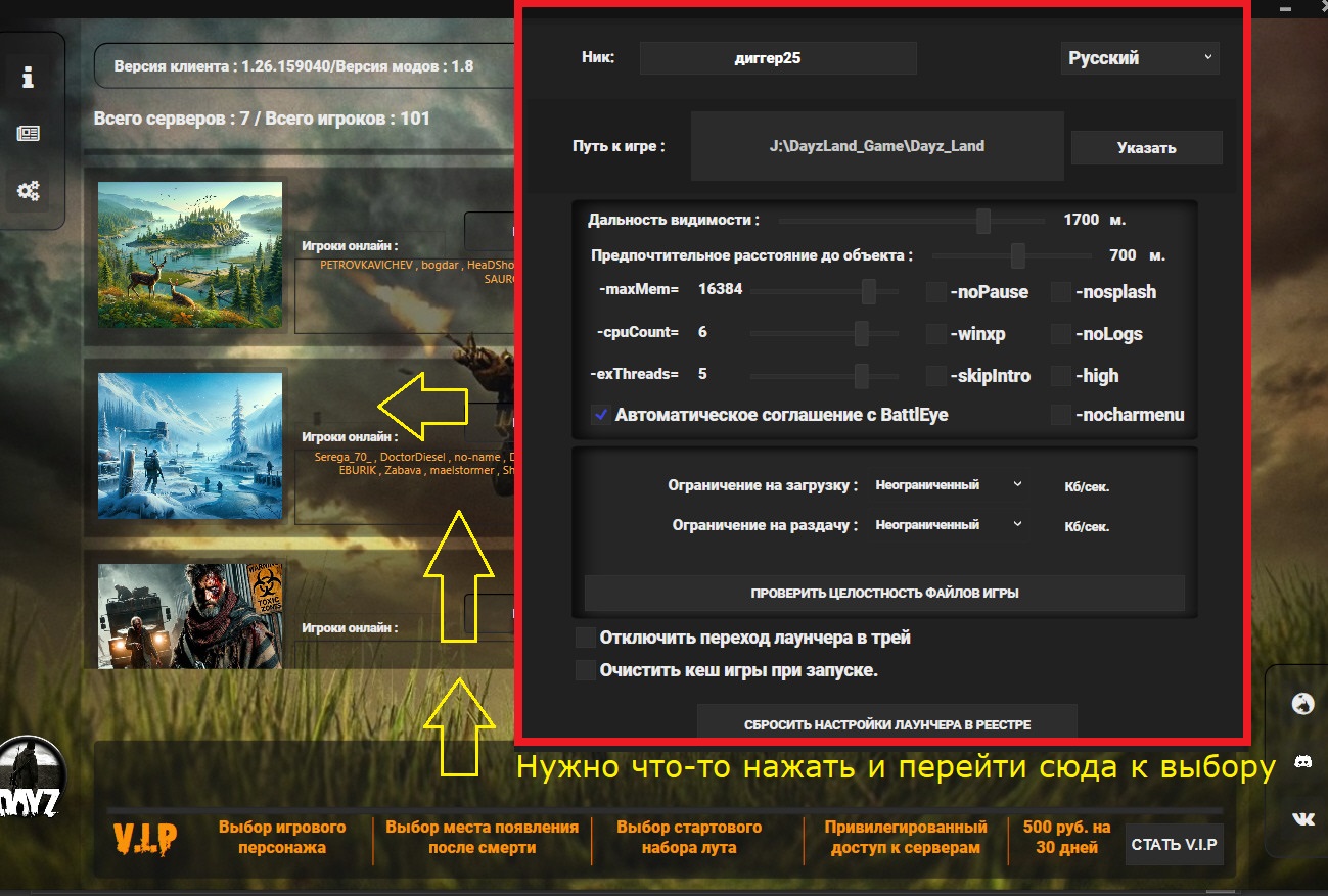 Привет. Это версия пиратка с таблеткой и лунчером. Скачана недавно, должно быть свежая. На сайте проекта зарегался. Я запускаю Лунчер, проходит авторизация, вход на консоль выбора сервера, я выбрал Намалск, нажимаю "присоединиться" и меня выносит на окно где просят указать свой игровой ник, поле я вижу, вписал и... кнопки ВВОД или Далее не наблюдается, Ентер жал много раз. Некоторые поля настраиваются, как надо я ни бельмеса. Ничего не трогаю только указываю ник и что далее делать? Входа в игру пока не получил. Черное окно в красной рамке (я выделил) должно пропасть и я попадаю на окно под черным, где надо выбрать инвентарь и еще что-то.