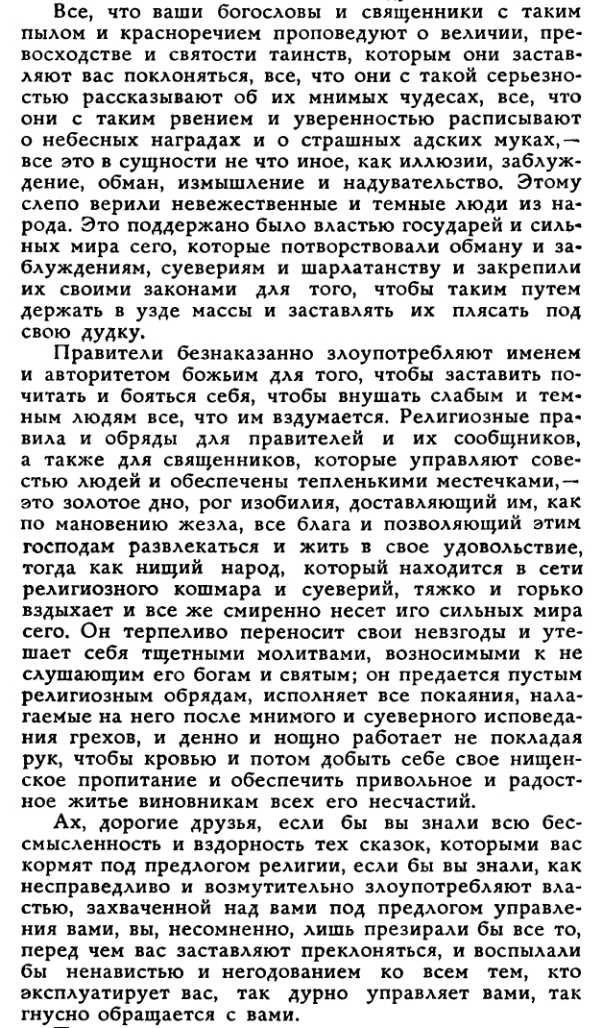 А вот что писал французский аббат Жан Мелье в начале 18 века о религии: