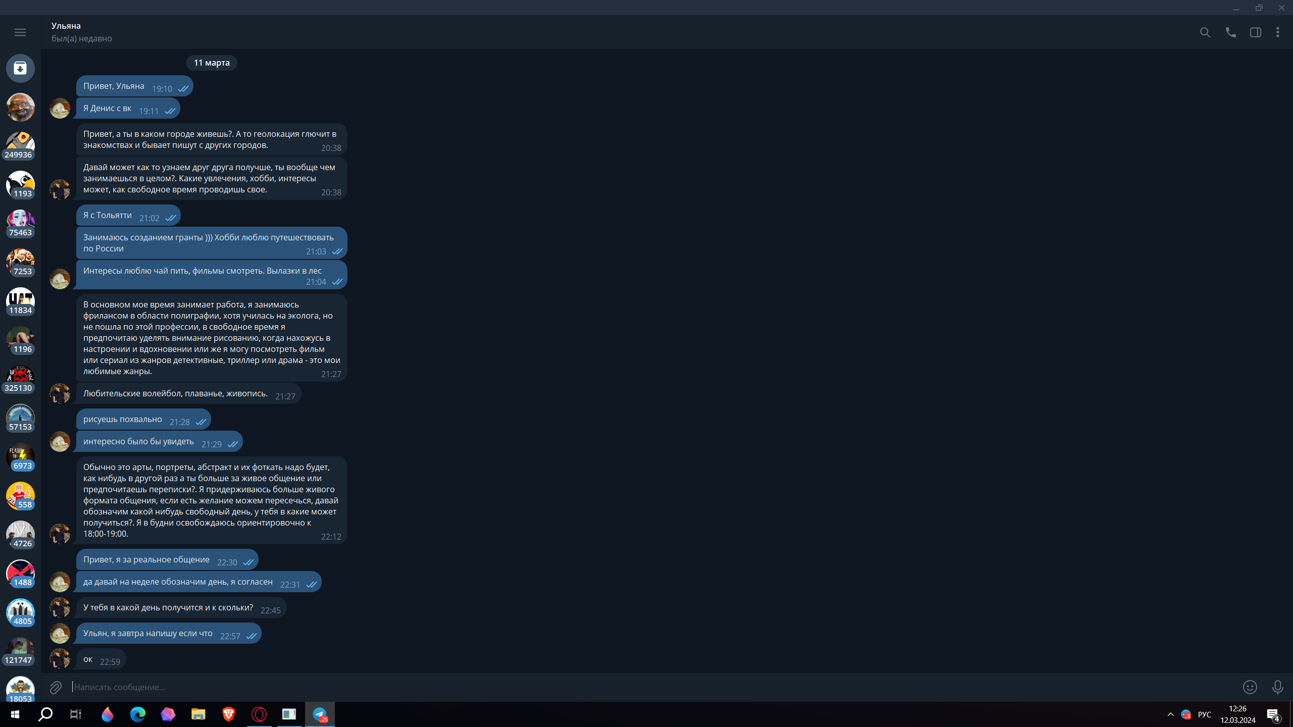 Есть два варианта на ситуацию выше Это пишет пацан который стебётся, т.к. бабы так не пишут. А фраза за живое общение это шаблон пацанский. И вариант который сейчас активно тестируется это бот/ии по знакомствам. я деталей не знаю. видел пару скринов. там парсят данные и в базу выгружают, потом бот мутит за тебя. кароче детская поделка. После вопроса про общение можно было бы набрать ей сразу в тг и стало бы ясно всё. Ну и плюс созвон это высокая конверсия и ты бы сразу показал за какой тип общения)