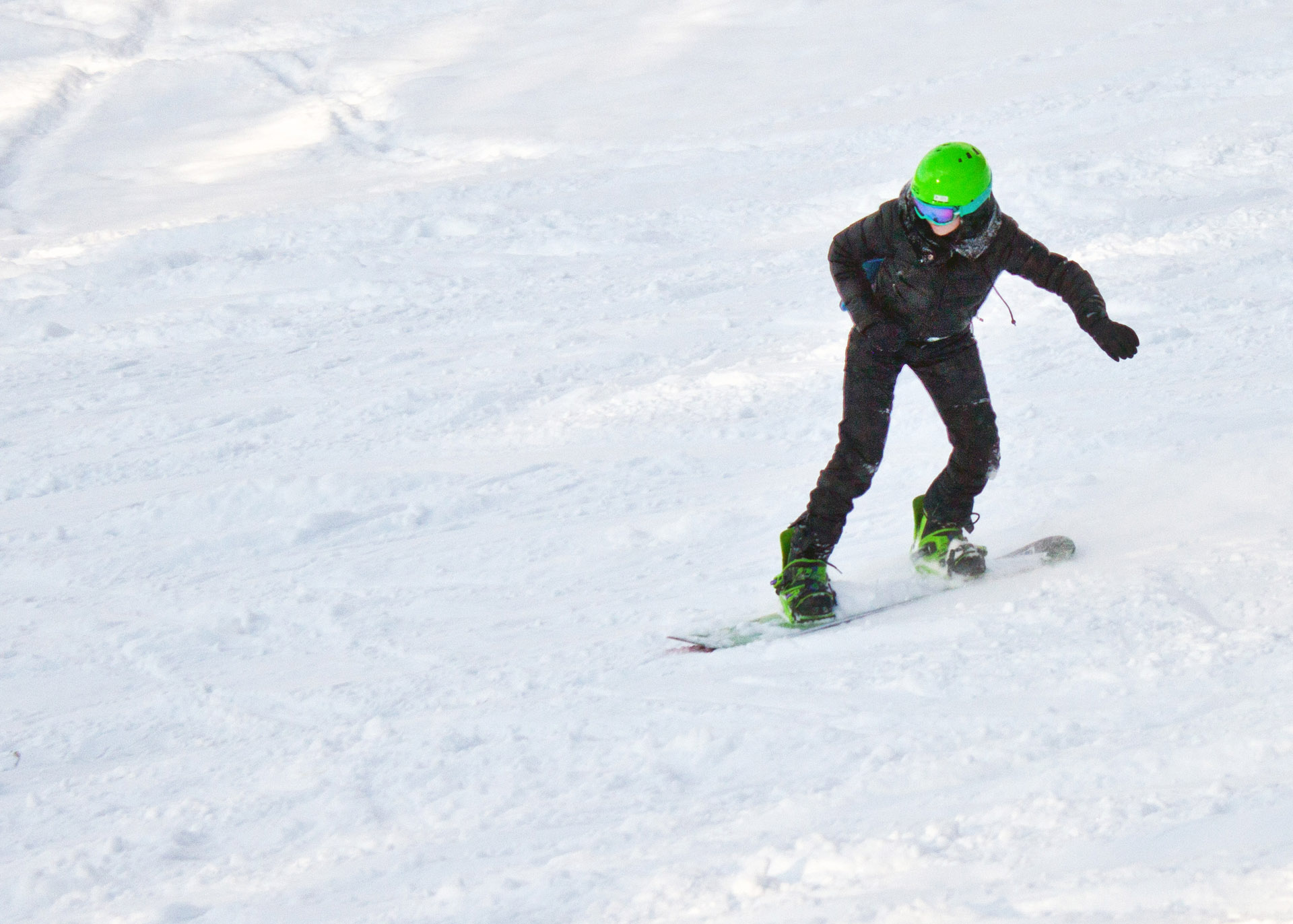 Дочка в январе встала на борд. В начале февраля первый раз перекантовалась. Сейчас уже свободно катается на трассах красного уровня. Ездим либо на местную гору с бугелем и ратраком, либо в фанпарк Боровый лог в Красноярске. До середины апреля, думаем, сезон продлится.