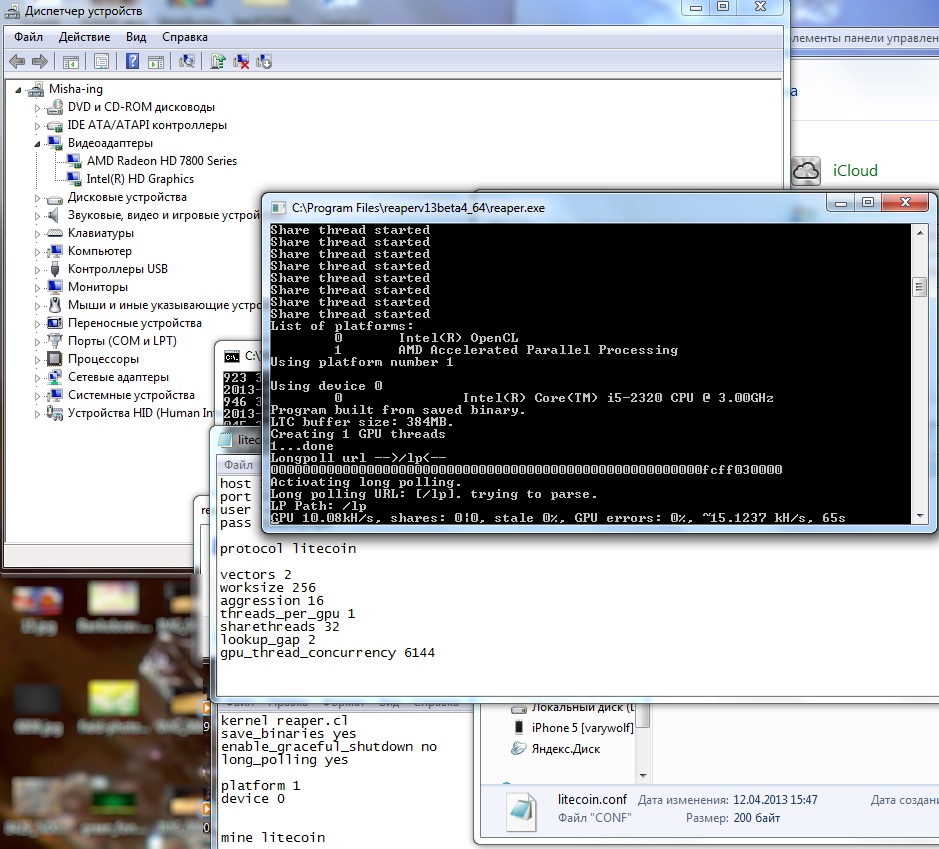 varywolf Скорее всего дело в дровах, запусти GPU-Z выбери 7850 и помотри есть ли галочка на OpenCL. Вчера была проблема с этим OpenCL решил поменять дрова после установки второй другой карты начались глюки и на свою беду решил воспользоваться чистильщиком дров после того эту винду хрен чем вычистишь от этой амд-шной заразы не видит OpenCL хоть убей, при попытке установить его отдельно пишет что уже установлено, к слову второй раз попадаюсь на этом помогла только переустановка винды, зато на чистой винде все работает как надо. Лучше не пользоватся доп. прогами для удаления а делать все стандартными средствами.