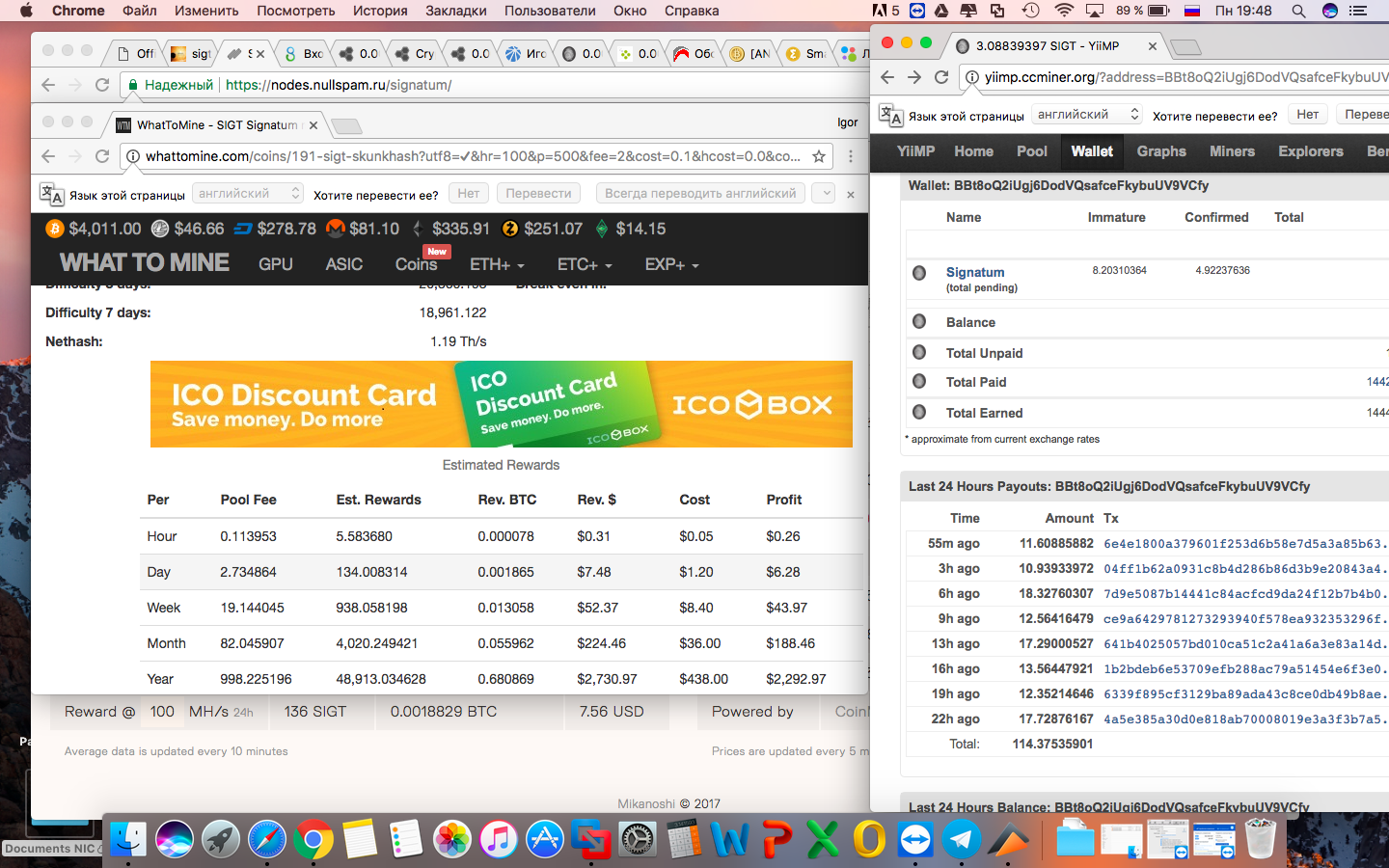 В последнюю неделю стал замечать, что на нове капает значительно меньше сиг, чем по калькулятору. Перевел вчера 2*1070 на зек, а на 2*1080ти стал копать сиги параллельно на нове и ямпе.