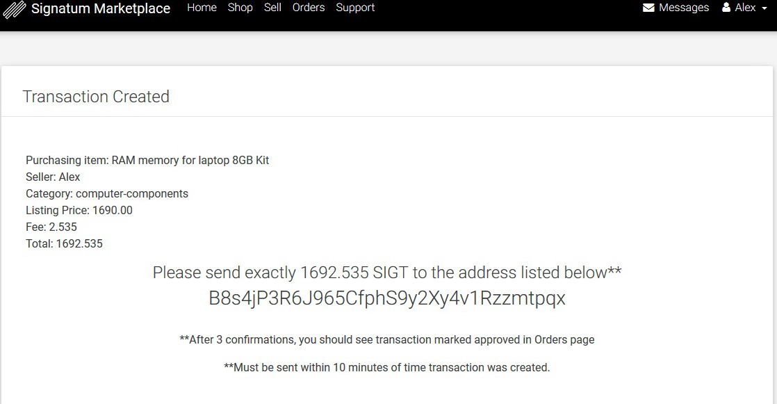 Только сейчас заметил, что по объяве на https://signatum.store монеты переводятся не продавцу, а в магазину(а уж потом магазин походу должен перевести уже покупателю). Типа как-никакая, но начальная защита от кидка(если конечно доверяете разработчикам ). Пока не вериться что получится реализовать полноценный магазин, скорее магазин используют для пампа сиг, но время покажет.