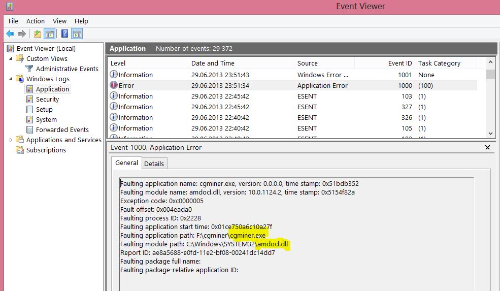http убрал. Изменений нет, пишет тоже самое в GuiMiner (miner Reaper). Порты пробовал и 9000 и 8332 (в самом ГуиМайнере указано когда наводишь туда мышкой ) Да, по предыдущему сообщению порт не выставлен был - с выставленным портом батник запускается и тут же закрывается а через miner CG в Гуимайнере после того как убрал http из адреса и порты 9000 пишет подключение и на этом тишина. в Журнале приложений - та же петрушка. Пробовал Cgminer снова прописан там порт. Вылетает. в Журнале приложения то же самое