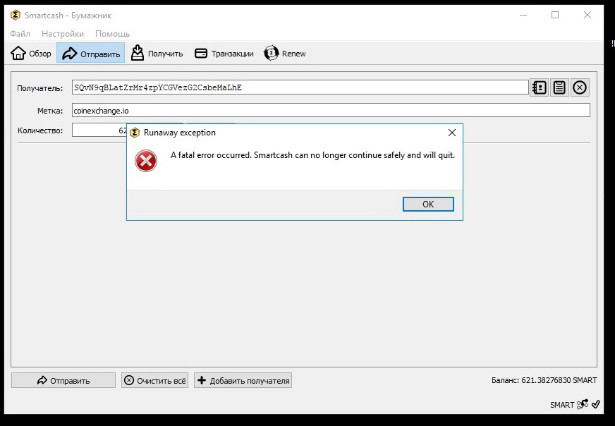 Mikanoshi Хелп нужен от тебя. У тебя кошель смарта как я понял синхронизировался. Не могу выдрать 600 смартов со своего кошелька. После синхронизации нового кошелька подставляю новый wallet.dat далее идет переиндексация блоков и после завершения при попытке отправить смарты кошель закрывается с ошибкой. Пробовал на разных системах с полным удалением старого кошелька из системы везде одна и таже история. Как вырвать свои смарты не знаю, может чего подскажешь? Ну или вариант я тебе файл wallet скину 100 твои, а остаток перекинь мне на биржу, просто уже зае...л этот кошель смартов, хочу слить и зыбыть про эти копейки.