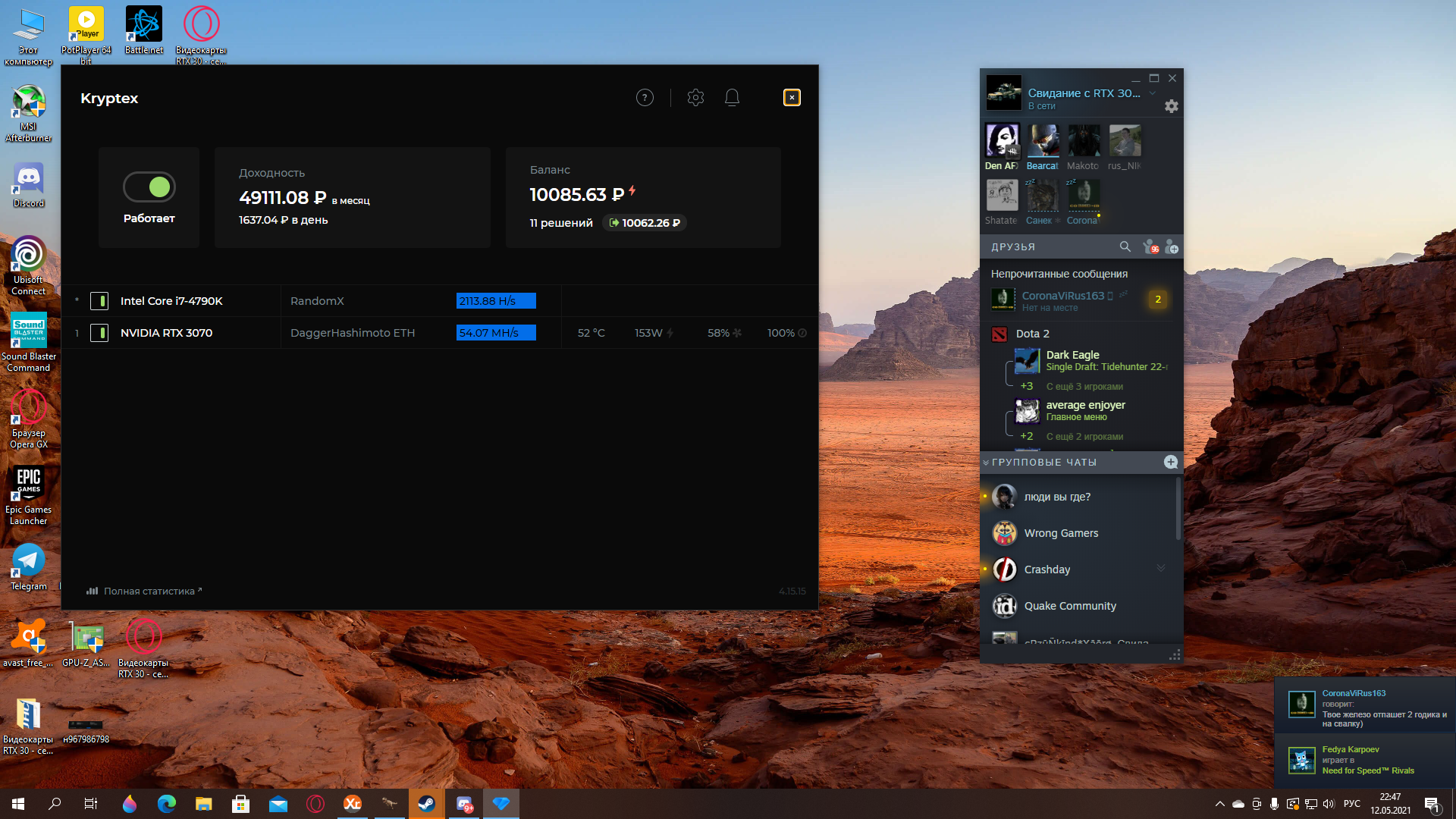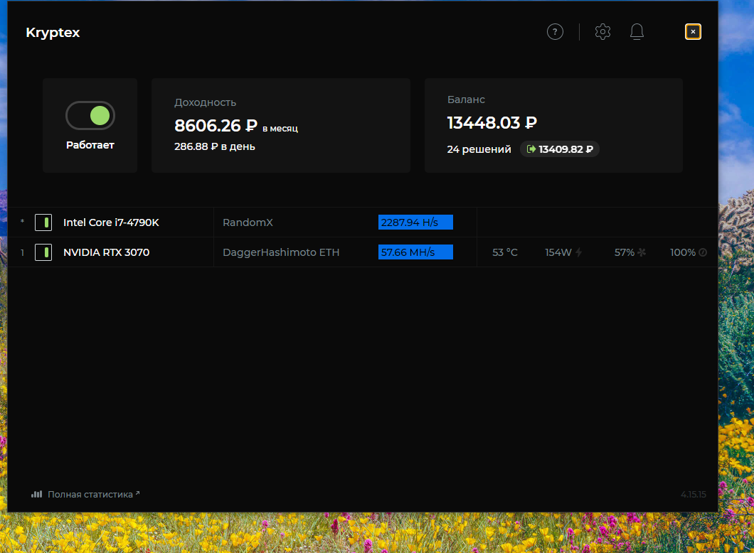 Вовремя решил трейдингом заняться Каждые 1-10 минут(образно говоря) по 300-500руб теряю . Психологический тяжело, но держусь Не плохой вариант будет обновить карты по типу 3060/3070/6700xt на более профитные)