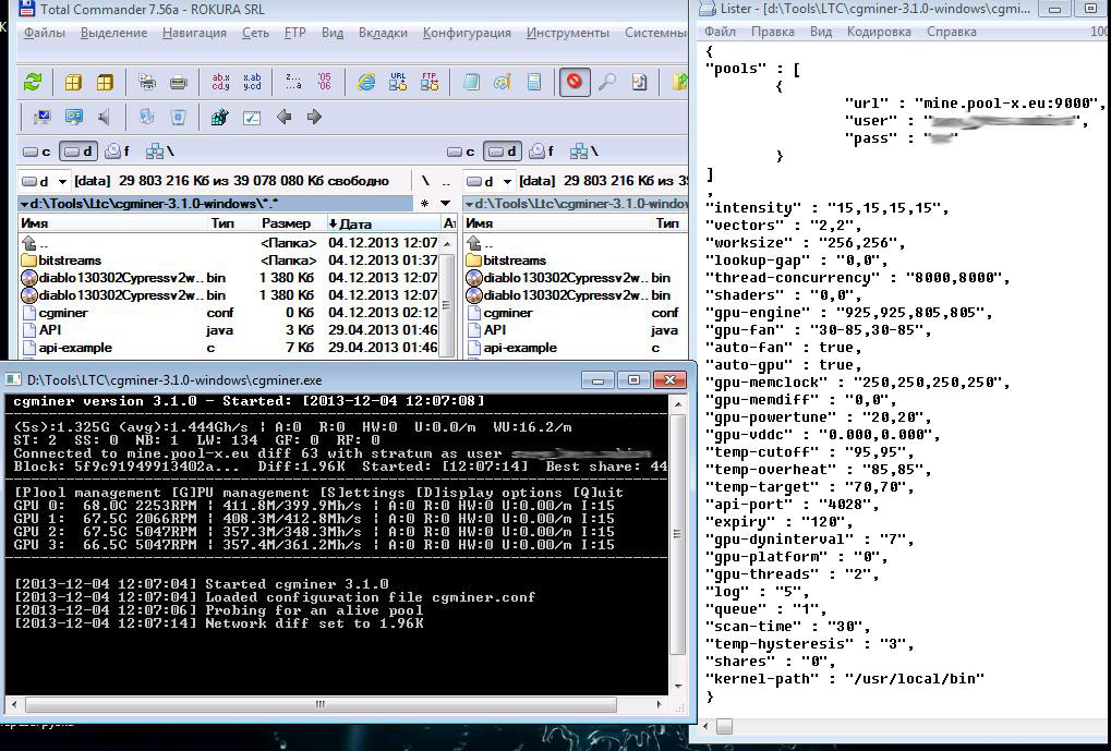 Всем добра! После 3-х месячного перерыва в майнинге опять включил ферму, т.к. битки добыть на видяхах не реально, решил майнить лайт. С майнером и его параметрами так толком и не разобрался, пробовал cgminer, на каких-то компах запустился, на каких-то нет, где запустился HW на половине карт достигает половины, а то и выше, я так понимаю это ошибки, т.е. половина работы видеокарты идет мимо пула. Ввиду этого несколько вопросов: наверно лучше все настроить с нуля, поэтому какую лучше винду ставить, какие дрова (есть 5, 6 и 7 серия радиков), какую версию open cl, какой пул и майнер использовать, ну и настройки для него. Если есть у кого возможность, помогите, можно в личку...