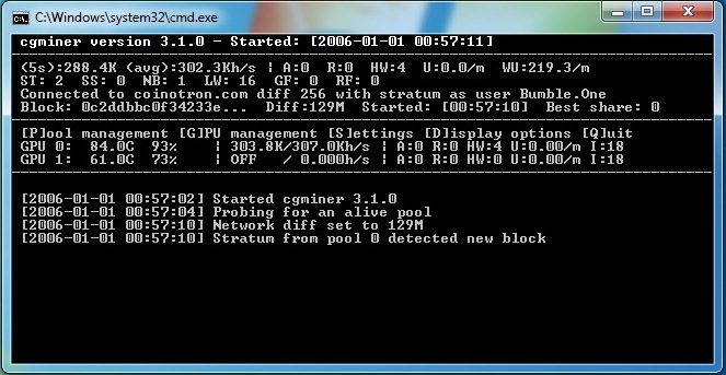 Добрый день, есть пара вопросов: 1) имеет ли значение версия cgminera 3.1.0., 3.8.2 может ли 1 майнер работать на одном пуле а на другом не работаь ? где то читал, что после версии 3.5.0 они не работают, какая версия на данный момент оптимальна, может лучше reaper или еще что-то ? 2) в батнике ставлю -intensity 17-18, при этом видуха(HD 6850) начинает греться, доходит до 80-82 градусов и где то в этом прмежутке при 100% вентиляторе держится, отсюда вопрос - стоит ли ее так напрягать для максимальных 240-270 хэш\с, какова вероятность что она быстро сдохнет ? 3) пытался в батнике поставить параметр "--thread-concurrency " - с различными значениями, но при этом майнер выдает ошибку и падает, в чем проблема ?