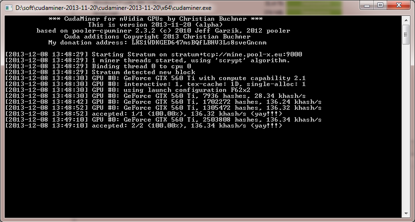 Хаё! помогите настроить 2шт. R9 290X. Драйвера последние, старые тоже пробовал, CGminer либо не стартует, либо по 500кН выдаёт. Единственные настройки с которыми запускается cgminer --scrypt -o stratum+tcp://mine.pool-x.eu:9000 -u ххх -p ххх -I 13 -g 2 -w 256 --thread-concurrency 8192