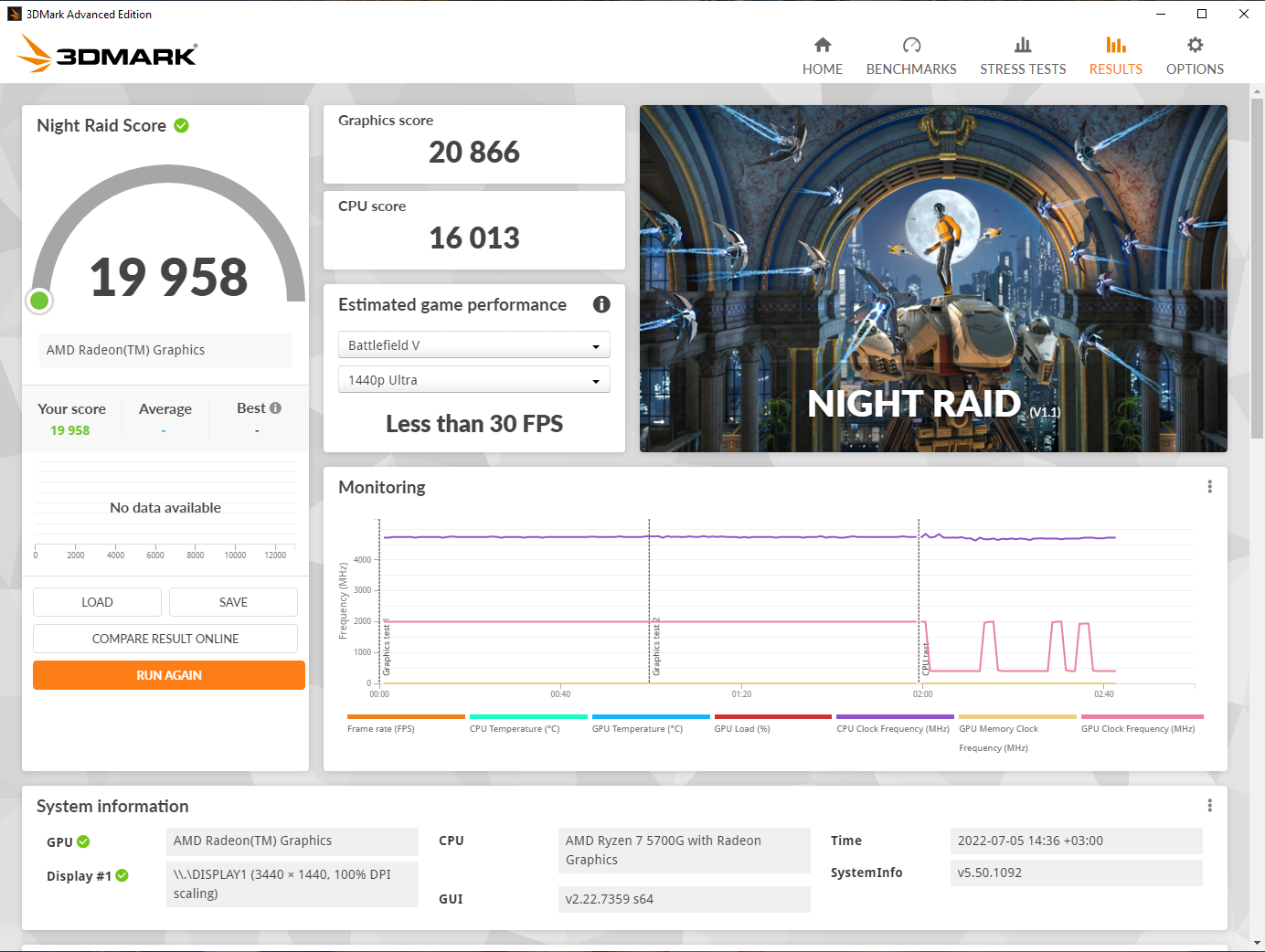 А вот тест на 4350G на той же памяти 3600 (графика в стоке), разница в баллах прямо пропорциональная разнице в числе графических блоков: