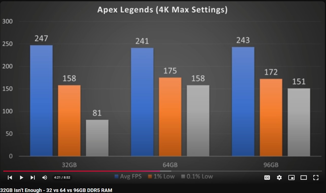 Щас 48 гб самый оптимум. 32 гб - мало и память с высокими напругами. А 96 гб - много и не едет по разгону. У меня 48 гб на 8200 котается (Z790 Apex). Мне норм.