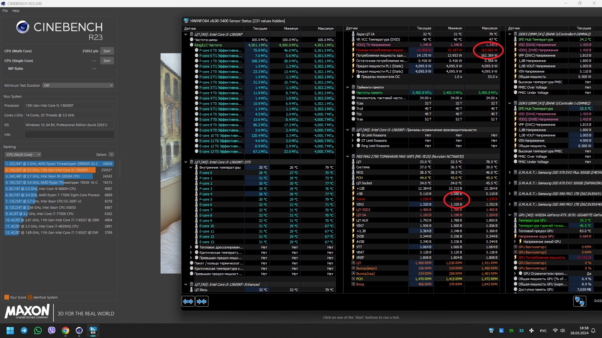 Может и правда в b660m mortar моей, сейчас сижу тестирую 3шт 13600кф и 1шт 14600к, 14600к поехал минимум на 1.250в. 1 13600кф поехал на 1.198в , а еще один не может работать на вольтаже ниже чем 1.310в это жесть какая то, один сейчас буду тестить)) справедливости ради 14600к на 10градусов примерно горячее чем 13600кф на 1.198в , тестирую через лайт лоад Пытаюсь отобрать лучший экземпляр что бы вставить в z690 taichi , или лучше сразу в ней тестировать надо было?