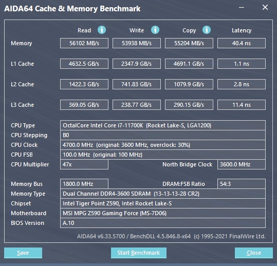 С той памятью и таймингам, результат на Z590, был бы лучше. На оверах.ua, с хорошей памятью и Z590 latency 40нс, результат на Rocket lake, без разгона с частотой 4.7GHz