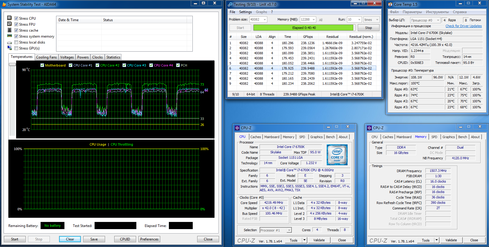 Температура повысилась на пару градусов, гфлопсов почему-то даже меньше стало.