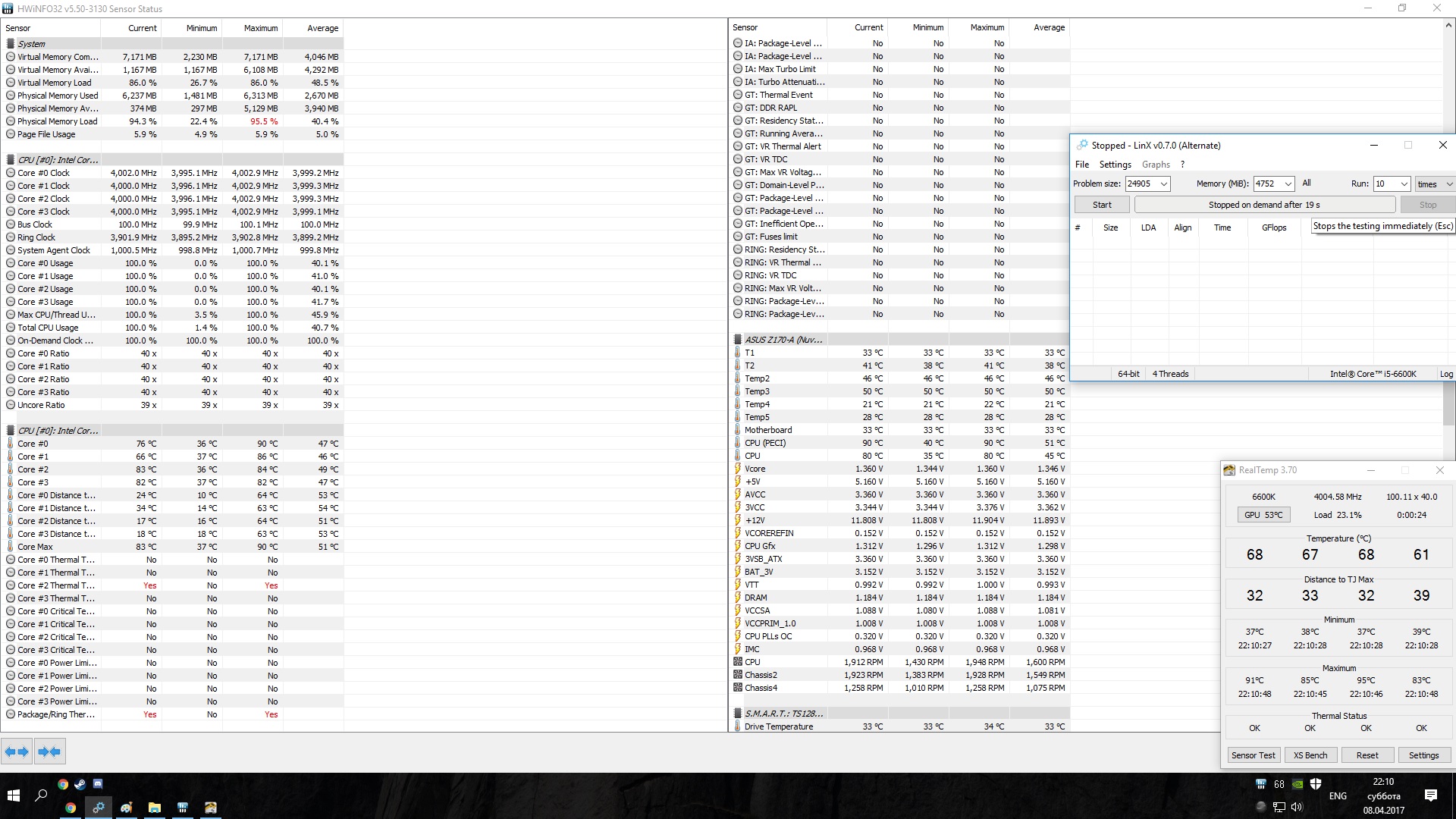 Ну если хочется 4500 на постоянку - снизь напругу, забей на линх! Прогони OCCT пару часиков! Не думаю что ты рендериш круглосуточно и тебе нужна 100% стабильность при 100% нагрузке в linx