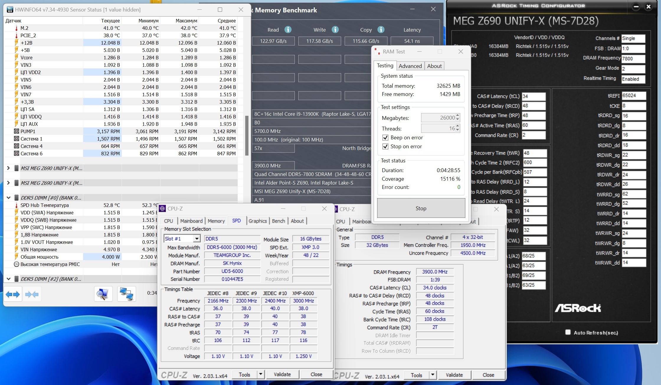 6400 это если повезет, а так в большинстве 6000 максимум без конских напряжений на кп. Смысла нет гнаться за a-die 7800, тайминги те же будут, разве что на след поколение и то, там может уже до 9000 будут модули. У меня Kingston 6400 даже 6200 не удалось взять из за контроллера памяти