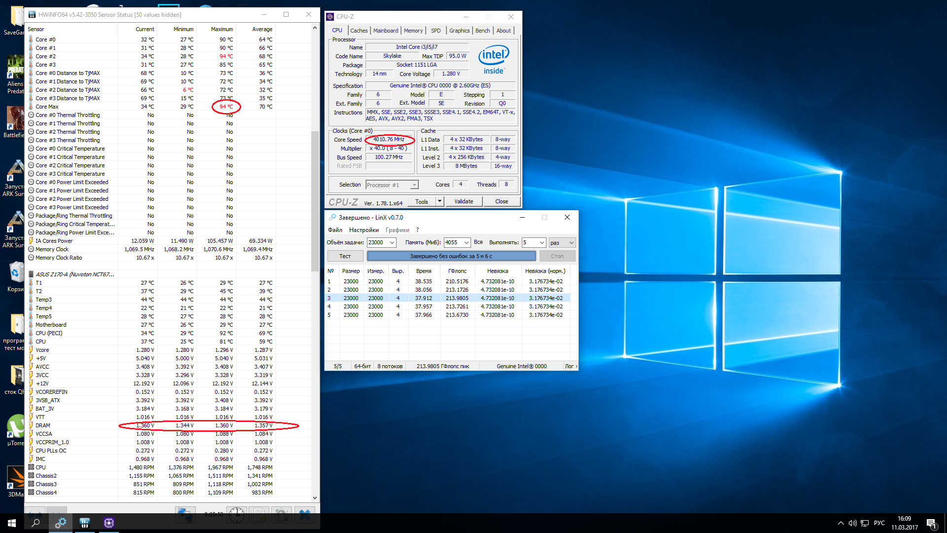 А что насчёт работы с памятью DDR3? Официально платформа Skylake работает с DDR4 и DDR3L. Но опытным путём установлено, что даже с планками DDR3 с рабочим напряжение 1.65В проблем не возникает при длительной эксплуатации. Есть наблюдения, что разгон на мат.платах с DDR3 затруднён из-за меньшего выбора множителей памяти.