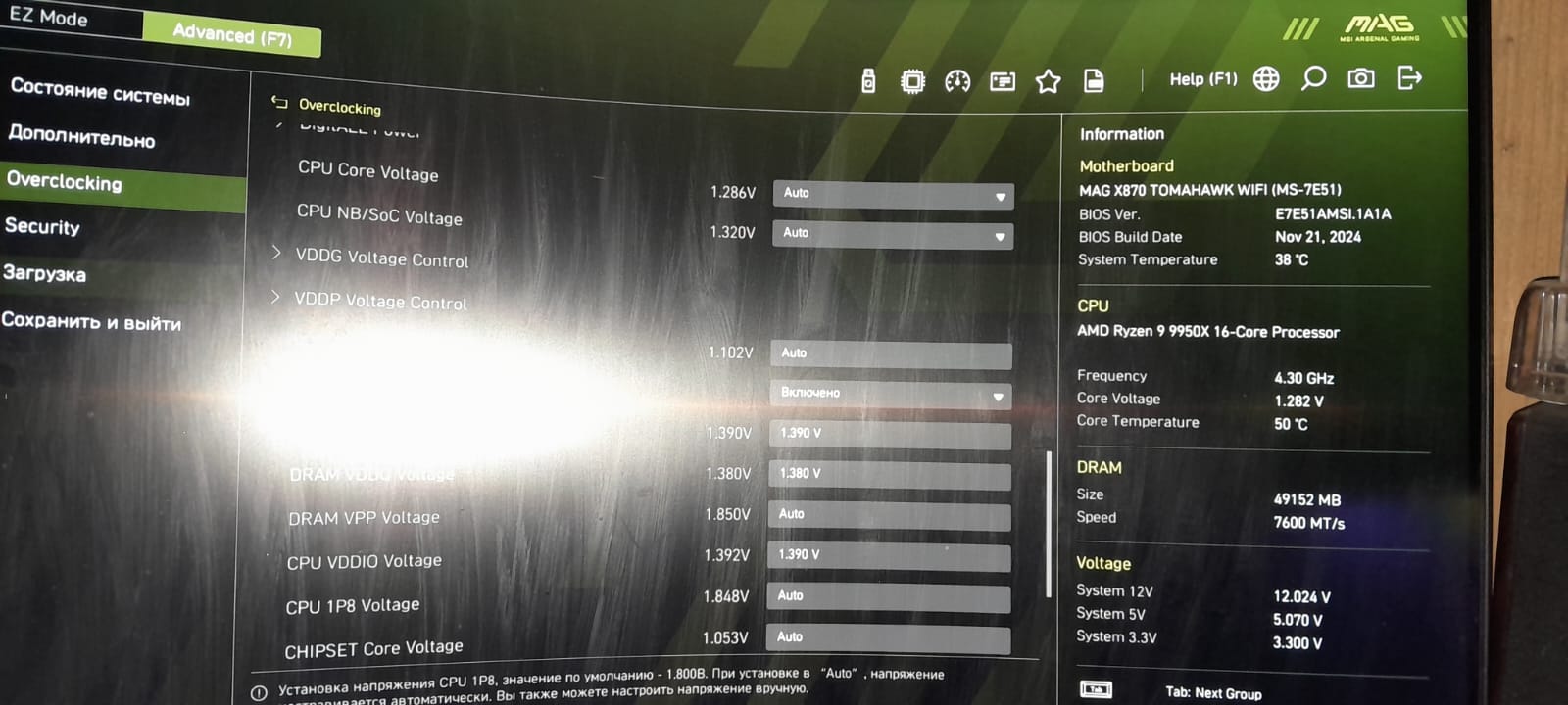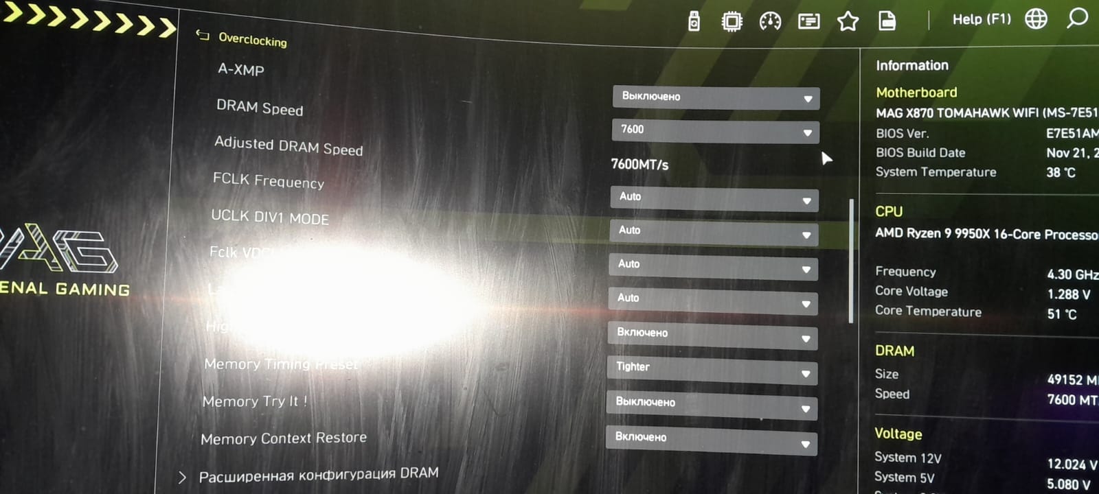 GerrLord347 материнка ASUS TUF B650 Plus WiFi. Скинь, будет интересно посмотреть. Просто не пойму хренли он частоты не держит выше 5,2