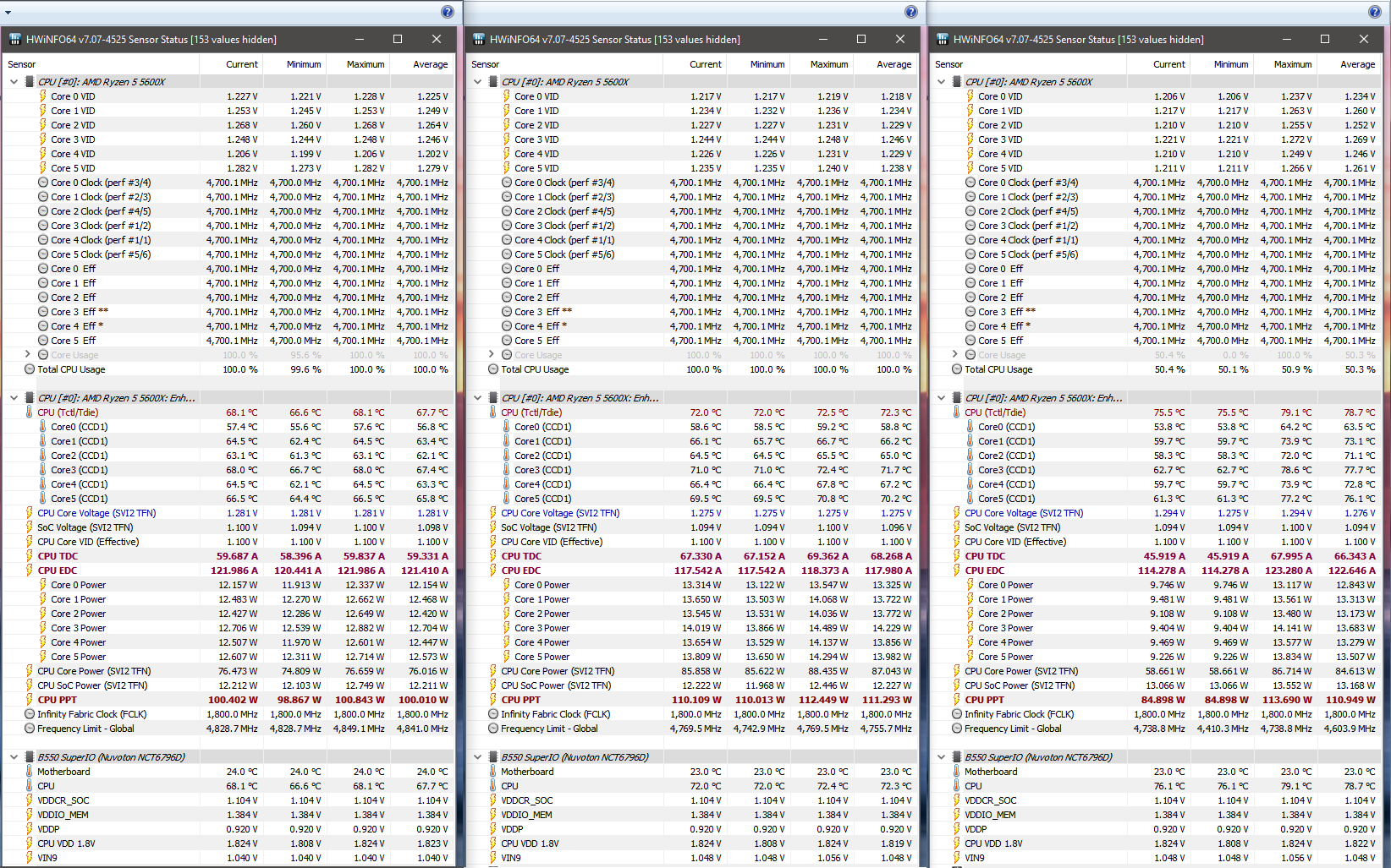 При этом методе игнорируется лимит EDC, лимит TDC настраивается исходя из возможностей VRM, какой ток в амперах материнская плата может максимально выдать не перегревая VRM, лимит PPT это максимальное потребление процессора, особенно актуально если система охлаждения очень инертная. 5900X/5950X упрутся в температурный лимит в 90°С на самом горячем CCD, 5600X/5800X в 95°С, эти значения можно уменьшить при помощи настройки Platform Thermal Throttle Limit. Последние 5°С до этого лимита дают приличные пенальти к бусту.
