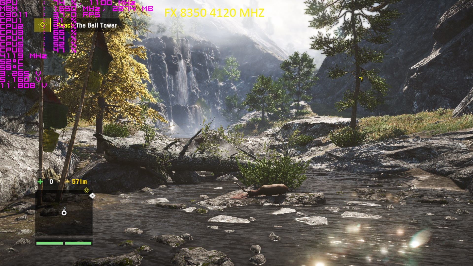 Взял на перепродажу FX8350 , в силу ущербности матери и кулера , он работал у меня в стоке ,сделал замер в одном месте в игре Far Cry 4 ,Скриншоты говорят сами за себя.