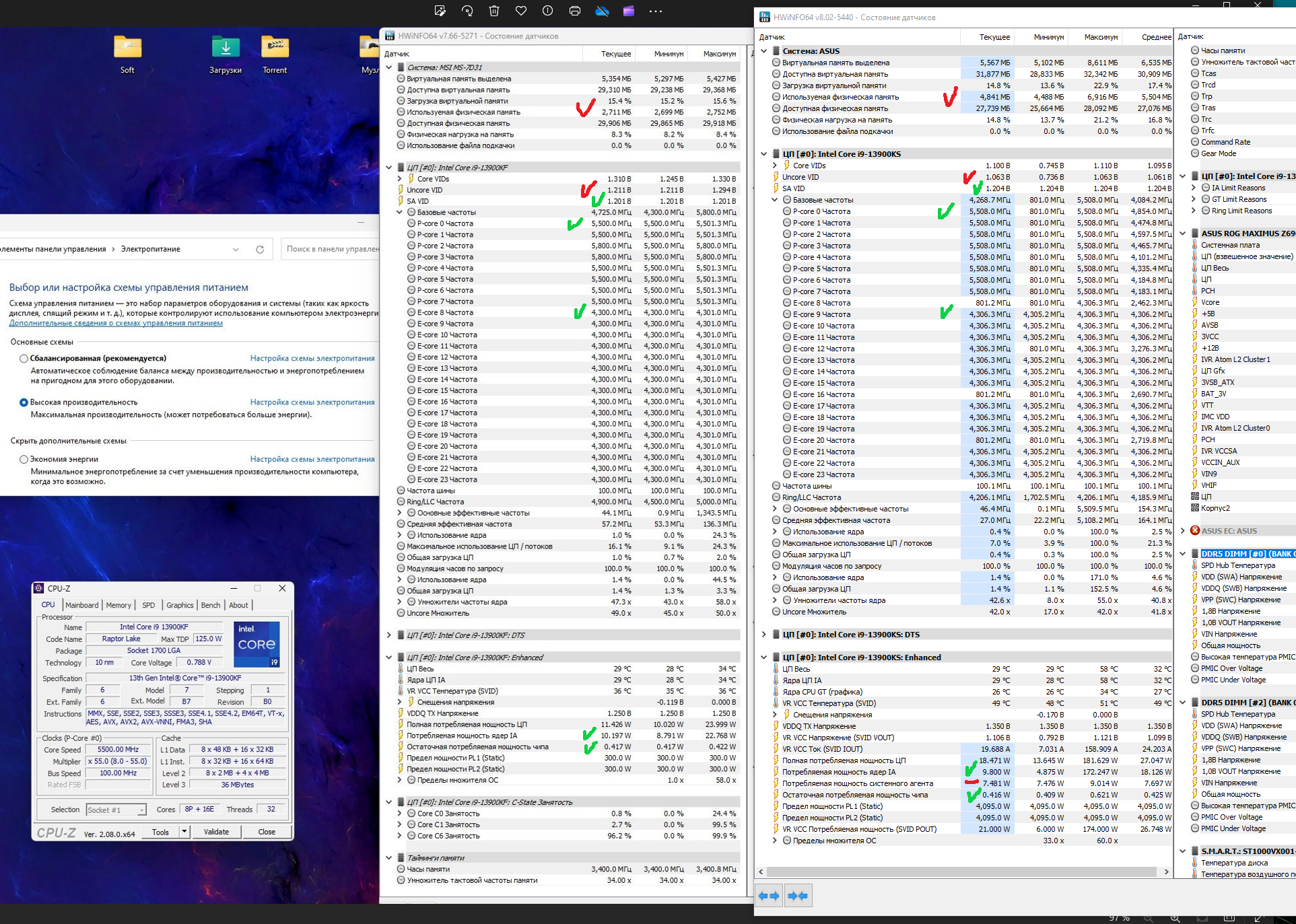 Да я про это писал уже, что при режиме "экономия" проц работает на 800-1000hz c 0,75v, а при любой нагрузке при отключенных Е-ядрах бустится по Р-ядрам (у меня на постоянку 5900hz), а если даже одно включить, то винда нагрузку падет на него, т.е. по умолчанию будет 4300. Выходит и частота ниже и сами Е-ядра примерно на треть слабее. Если потребление было бы таким как у тебя, смысла в этом конечно нет. Но у меня так не выйдет. Поковырялся сейчас, подвоха вроде нет, значит дело или в Винде (у меня W10) или в разном отражении HWinfo датчиков asus и msi (?). Разница между 5,9 и 5,5 не так велика, поставил 5,5 и врубил дикий андервольт https://valid.x86.fr/hcp5mb (к слову зачем он нужен - ответ сторонникам теории "intel i7/i9 никак не охладить"). Но потребление даже так выше.
