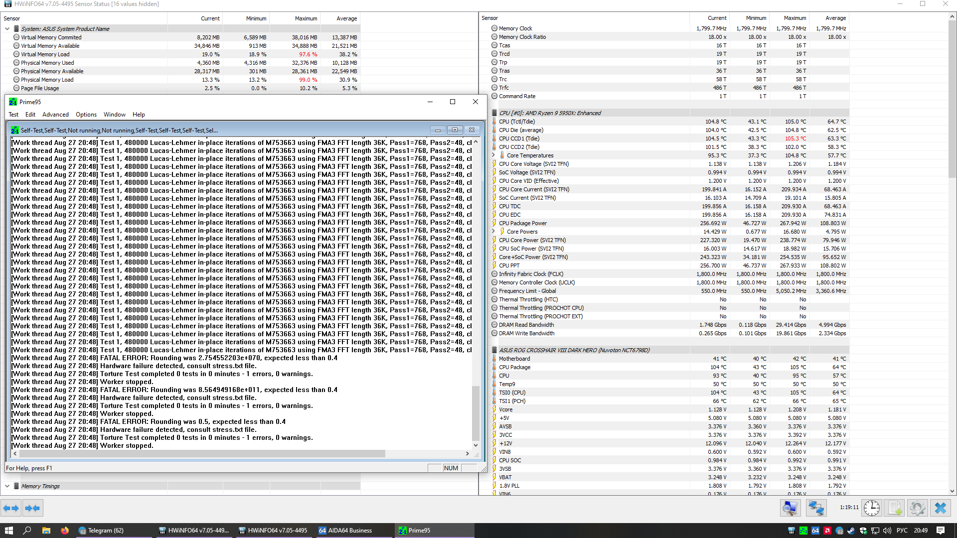 Делюсь болью и страданиями! В начале 2021 года купил я 5950X и материнку ASUS X570-I всё настроил спустя пару месяцев, радовался. Спустя пол года начались приколы, за неделю разок проскакивали ошибки WHEA Logger, по одной, потом через пару месяцев вообще критически ошибки WHEA Logger начали появляться и ребуты, причём под малыми нагрузками при просмотре видео или ютубчика, или при свёрнутой игре на паузе. После перепаковки водоблока на видюхе остались термопрокладки Gelid GP Ultimate, разобрал материнку, поменял термопрокладки на VRM, на обратной стороне VRM и на чипсете и вуаля, всё как рукой сняло. Напряжения CLDO VDDP, VDDG IOD, VDDG CCD получилось снизить до старых пределов. Какая связь между WHEA и охлаждением материнки я ХЗ. Но изначально начало помогать тупо обдув вокруг сокета 120мм вентилем. Теперь и без вентиля работает. Посмотреть бы на материнку в тепловизор.