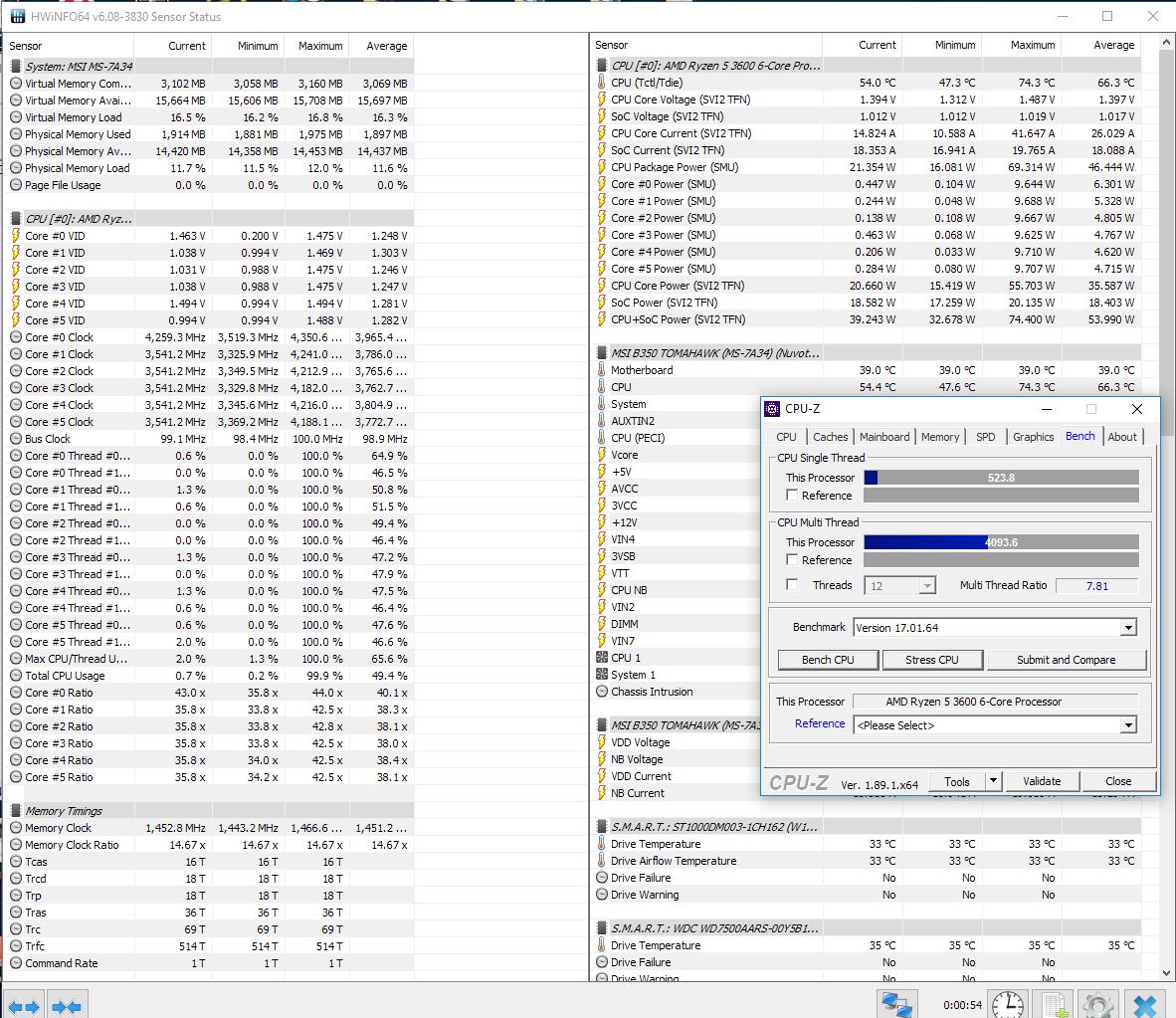 Продолжаем мучать 3600 на прабабушкином Томагавке. Прайм с самым агрессивным режимом PBO. От температуры CPU можно смело отнять 20 градусов - но все мы любим MSI не только за это)