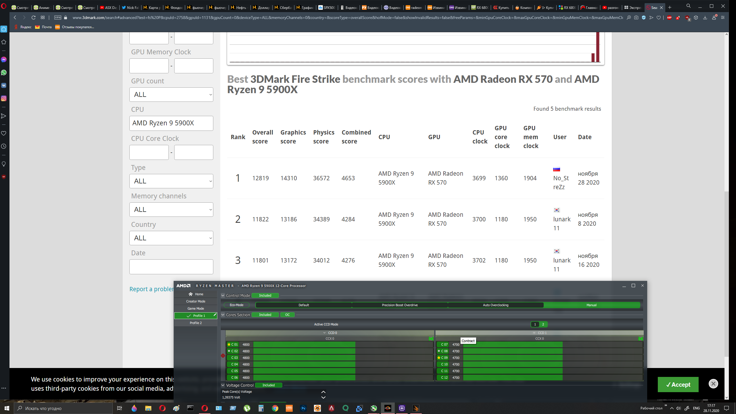 Немного о том как настраивать авторазгон этих процессоров. Один из методов. На примере Ryzen 9 5950X и материнской платы ASUS X570-I, охлаждение кастомная СВО 1)VCore Offset тесно связан с Curve Optimizer. Сама по себе Curve это некая зависимость частоты от напряжения. Сначала выставляется напряжение, потом из этой зависимости/графика берётся соответствующая частота. Форму самой кривой/графика мы менять не можем, как в разгоне видеокарт NVIDIA, но можем двигать всю кривую целиком вверх и вниз. Что нам это даёт? На каждое напряжение можно подобрать максимально стабильную частоту, причём на каждое ядро. Ну или почти максимально стабильную, возможности ограничены 30-ю шагами вверх и столько же вниз. Что нам понадобится?