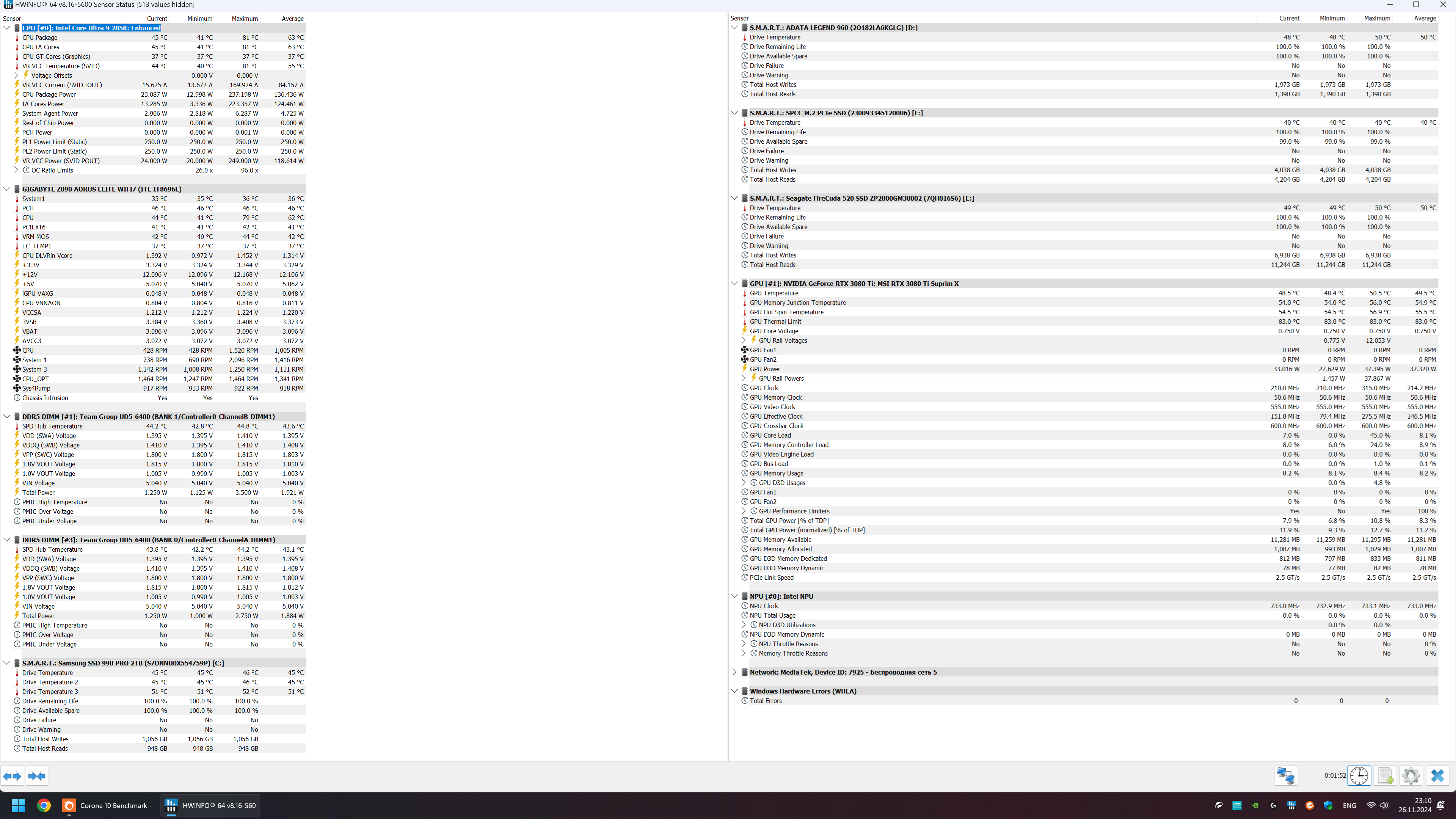 Добавлено спустя 6 минут 55 секунд: Скажу по секрету, я на кулере корону пройти не могу... 97 градусов, тест закрывается, за 15 секунд до завершения...Повышать напряжение некуда...Ест более 330 ватт.