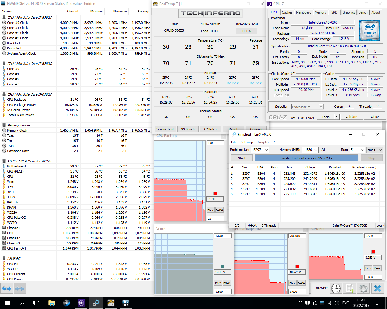 Добавлено спустя 4 минуты 30 секунд: Специально тестовый стенд на материнке H270 plus ASUS Эта материнская плата не поддерживает разгон. и не поддерживает работу с 45 множителем, в нагрузке на 4 ядра только 44 множитель и 4400 мегагерц, эта материнка не может менять множитель, не может менять частоту шины, не может разгонять оперативку, и что мы видим? те же самые 100 градусов и троттл в линексе. [img]http://savepic.ru/13919647.jpg [img]http://savepic.ru/13914527.jpg