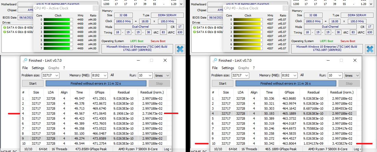 Делюсь болью и страданиями! В начале 2021 года купил я 5950X и материнку ASUS X570-I всё настроил спустя пару месяцев, радовался. Спустя пол года начались приколы, за неделю разок проскакивали ошибки WHEA Logger, по одной, потом через пару месяцев вообще критически ошибки WHEA Logger начали появляться и ребуты, причём под малыми нагрузками при просмотре видео или ютубчика, или при свёрнутой игре на паузе. После перепаковки водоблока на видюхе остались термопрокладки Gelid GP Ultimate, разобрал материнку, поменял термопрокладки на VRM, на обратной стороне VRM и на чипсете и вуаля, всё как рукой сняло. Напряжения CLDO VDDP, VDDG IOD, VDDG CCD получилось снизить до старых пределов. Какая связь между WHEA и охлаждением материнки я ХЗ. Но изначально начало помогать тупо обдув вокруг сокета 120мм вентилем. Теперь и без вентиля работает. Посмотреть бы на материнку в тепловизор.