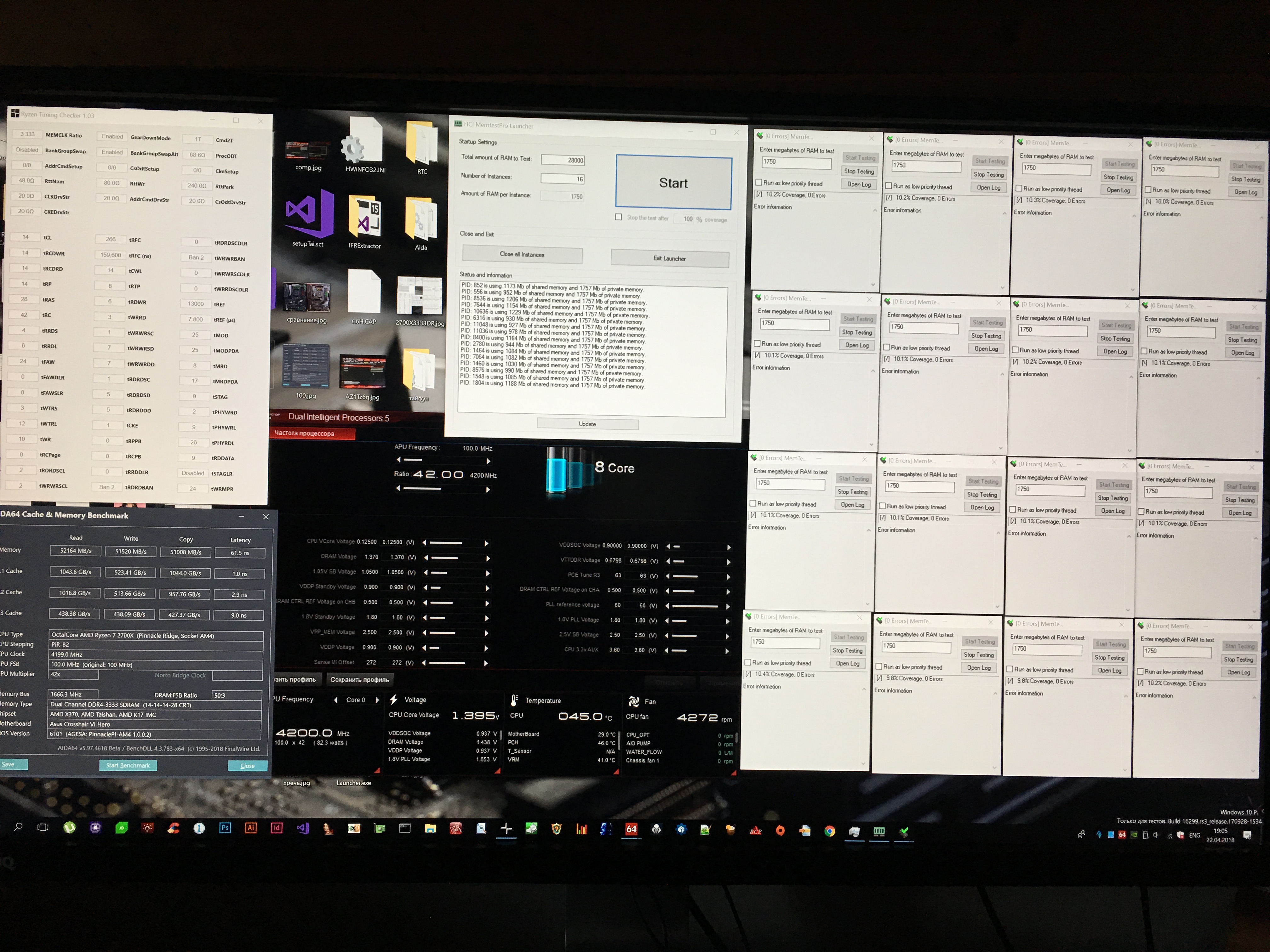 - Какие пределы по вольтажу для ZEN+? - Для ZEN+ предел стабильности кремния (LP12) по вольтажу: для всех ядер 1,330 и 1,425 для одного ядра при условии PBO Scalar 1X (это стоит у всех мат плат по дефолту без исключения). Для PBO Scalar 10X это 1,400 и 1,480 соответственно. Выше - гарантированные проблемы с TDP и со стабильностью. То-есть если вы наваливаете свыше 1,48 для разгона по всем ядрам - процесс деградации процессора запущен.Норма до 1,45.