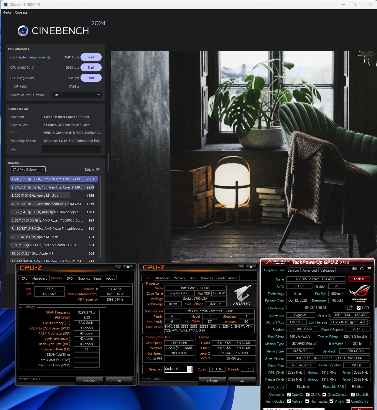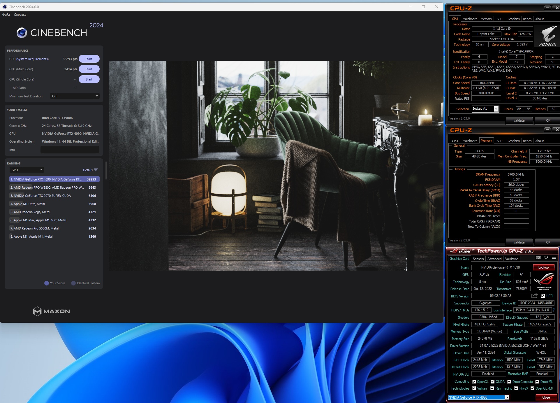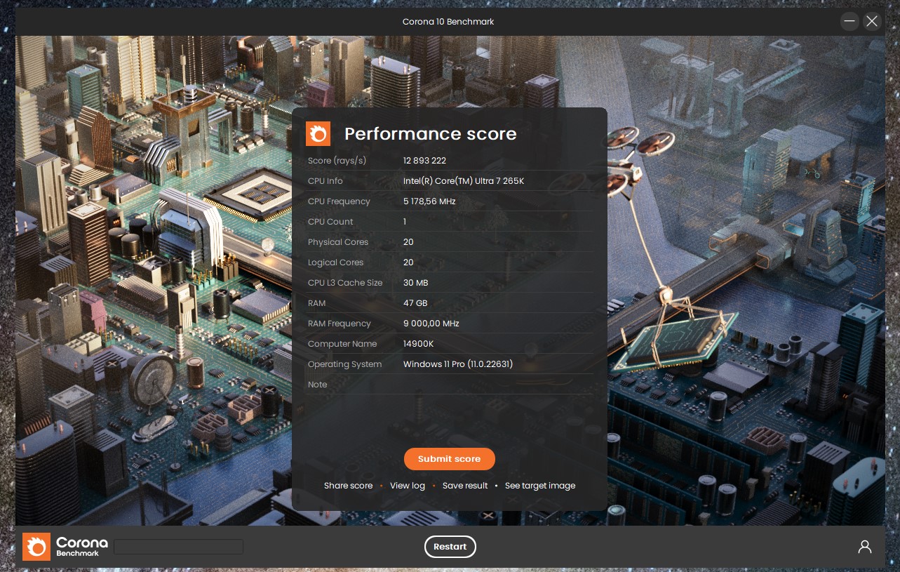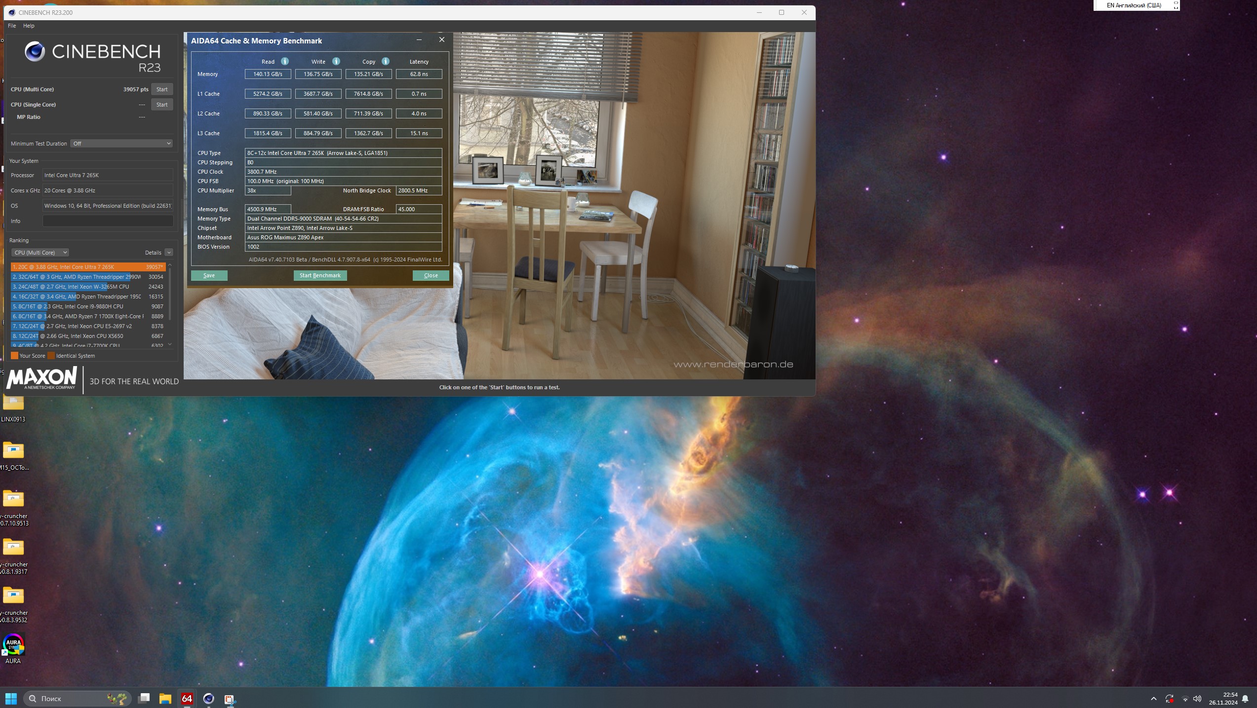в синебенче помоему память не влияет на результат, здесь разгон процессора, кэша и d2d с ngu влияет c куцым разгоном CPU - 5.4P/5.05E и память на 9000, примерно так получается.