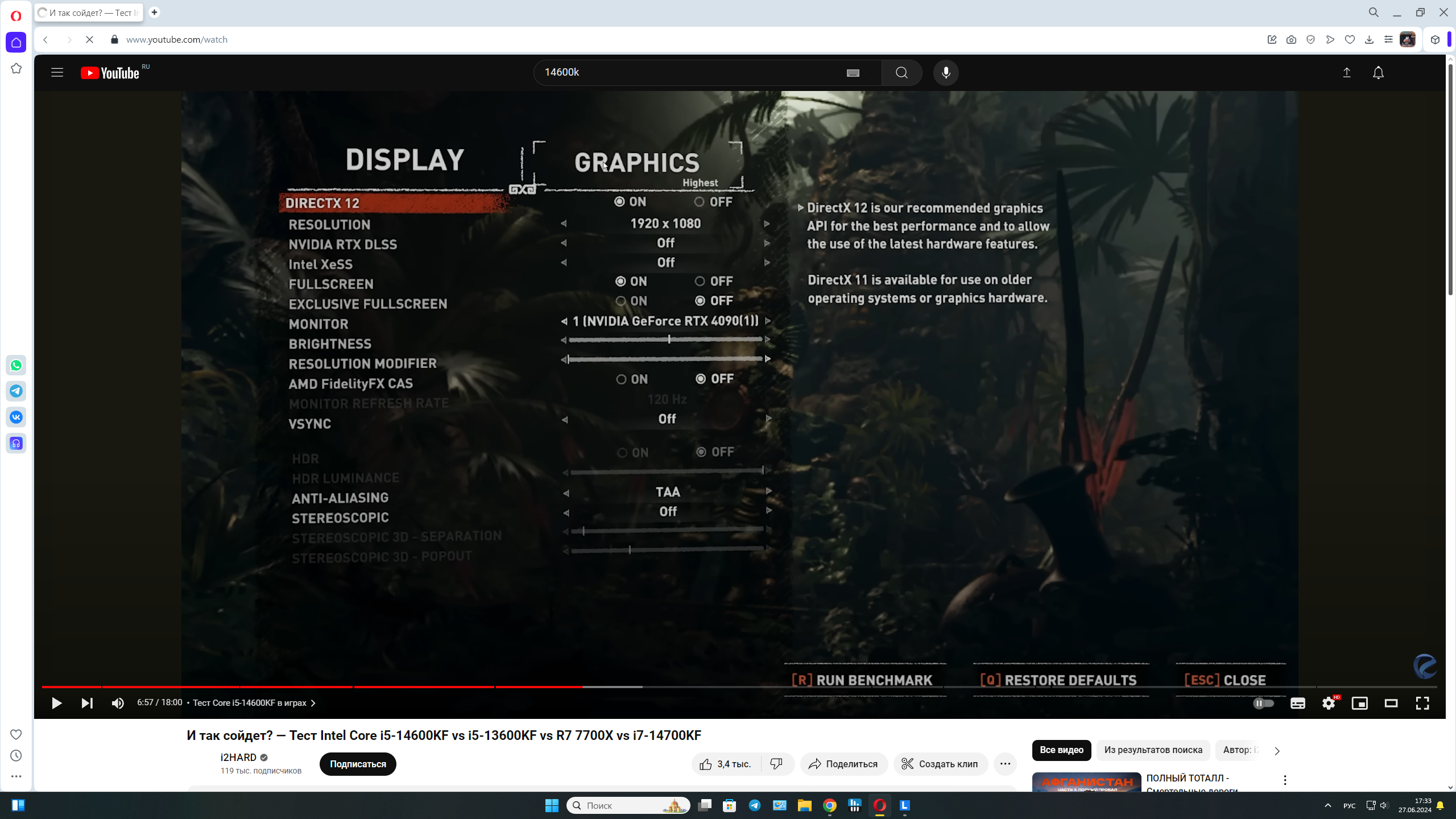Ну в этом и смысл)) и это ты еще сглаживание не включил как в видео. Вся соль в том что доверять этим мамкиным тестерам вообще нет смысла, нужно самому тестировать процы и смотреть, а то некоторые насмотрятся таких "профессионалов" а потом рассказывают на каждом углу что 7800х3д супер игровой проц)) а по факту тесты нормально сделать не в состоянии у меня 470супер 14600к сток и память 6400сл32 проц и память как у айтухард в видео, только у них карта 4090, а каким то хреном он умудрился натестировать так что 14600к дал фпс на 15% меньше чем дает реально, а 14700к получился по его тестам как 14600к мой
