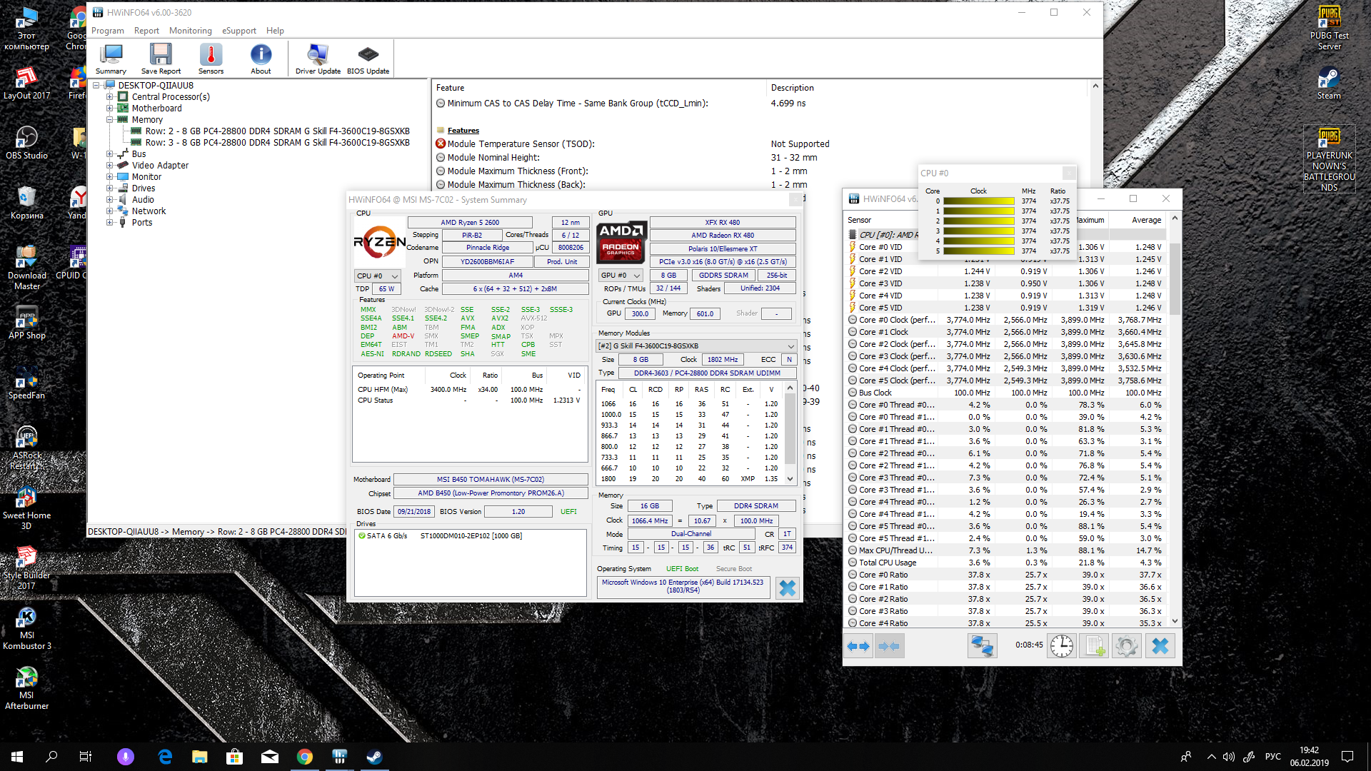 сейчас погамаю пару часов, а утром запущу тест памяти, посмотрим что получится, отпишусь разумеется о всех изменениях. в любом случае если и будет ошибка то я почти уверен что стабилизировать её на 3600 удастся, в любом случае у меня была цель получить 3600 от этой памяти, дальше может быть и не погоню, не того класса память всё же что бы этим заниматься, а вот 3600 в самый раз и напряжение вроде бы допустимое - 1.385 кстати в играх ФПС поднялся значительно, была система старая на проце 4670К, в некоторых играх до 30-40 кадров прибавилось на новой системе. АМД делает своё дело за сущие копейки по нынешнему курсу жизни...
