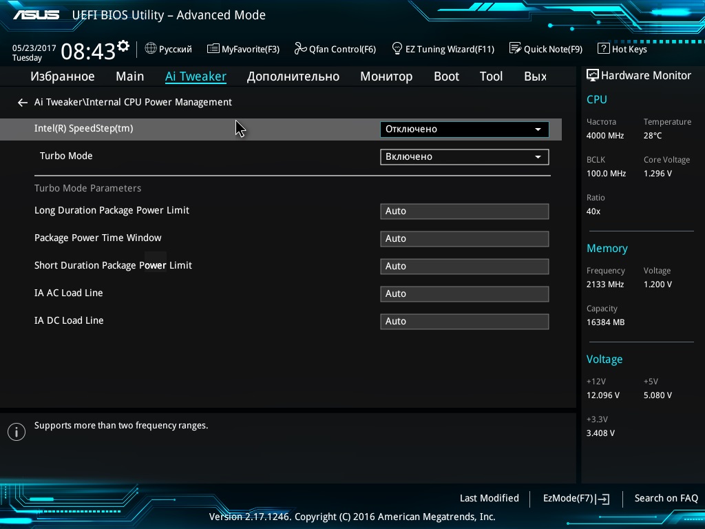 всем привет, у меня была проблем - то что я ставил определенную частоту проца, некоторое время она держалась, но потом снова сама по себе была. Советовали отключить CPU C-states, VRM Spread Spectrum, Intel(R) Speedstep - я их отключил, но все так же - напряжение своей жизнью живет. Или это нормально?)