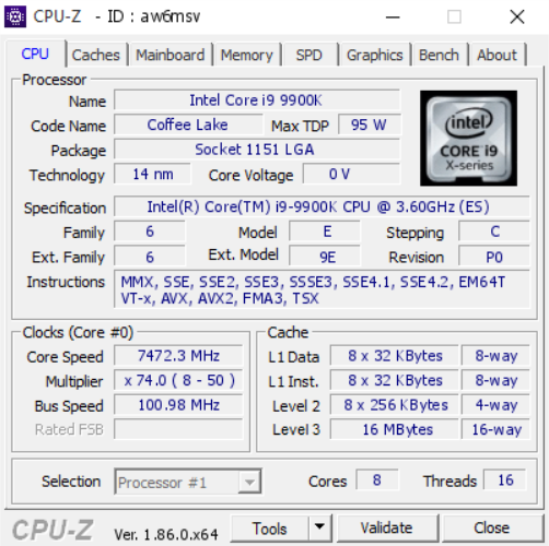 (!) А также убедительная просьба кроме скриншота, пишите свою версию ОС, версию BIOS, модель материнской платы, тип охлаждения и заданное (и/или реальное) напряжение Vcore и указываем заменён ли термоинтерфейс под крышкой процессора, и на что заменён (другую термопасту или ЖМ). Ещё желательно указать номинальный VID процессора (штатное напряжение на штатной частоте с отключенным Turbo Boost), а также Batch – серийный номер/номер партии (его можно посмотреть на крышке процессора). Результаты разгона можно присылать в ЛС куратору темы, а также постить в теме соблюдая имеющиеся ограничения на размещаемые размеры снимков. Все прошедшие проверку результаты будут добавлены в статистику разгона Coffee Lake.