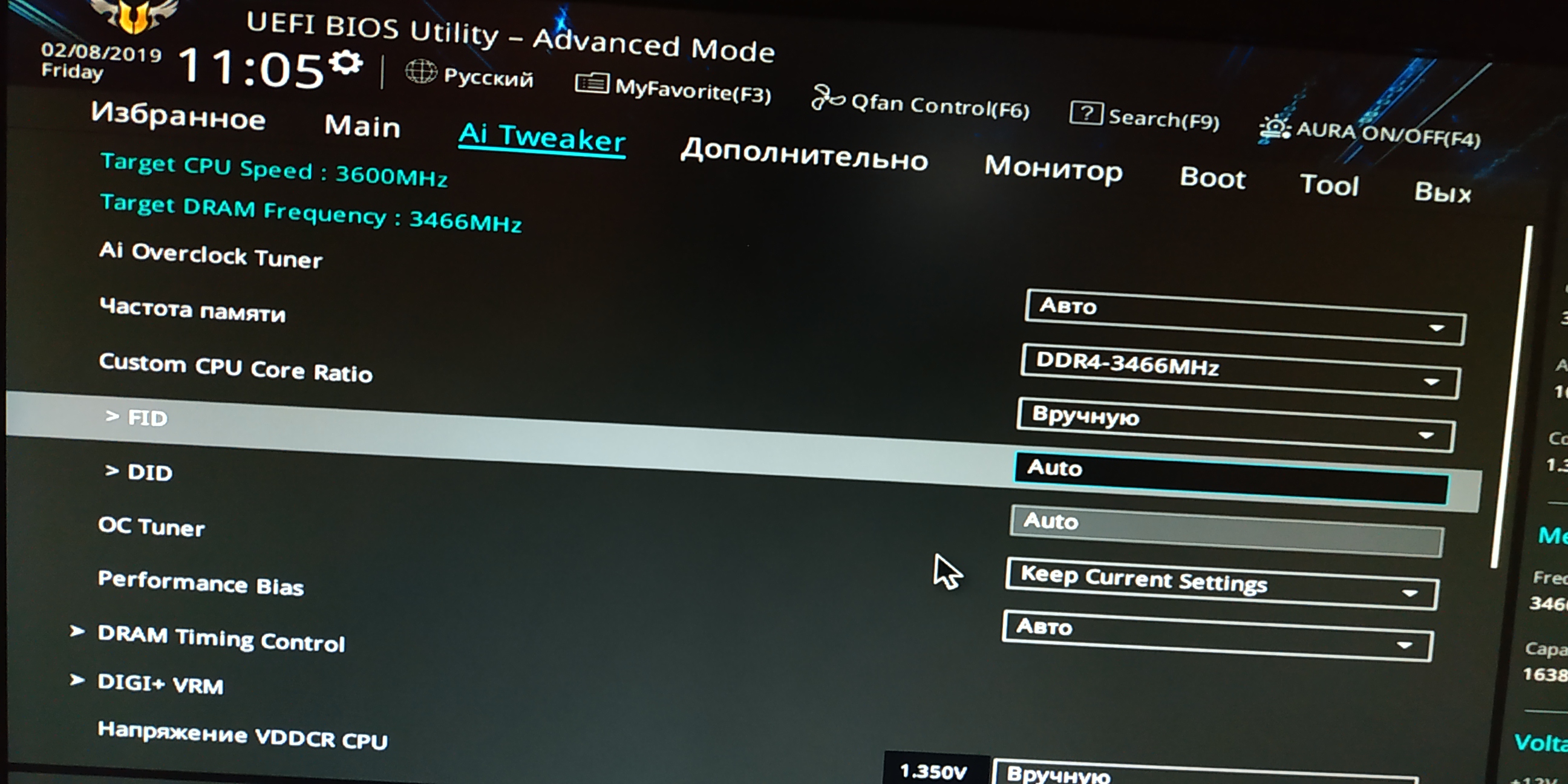 bigmotor Давайте без крайности) Частота проца/памяти напряжение на эти компоненты - находятся в прямой зависимости. Например на данном конфиге у меня проц 4.2 на 1.35В LLC1 и Vsoc 1.05B память 3446 при 1.45В в биосе, по мониторингу 1.472В В данных значениях все стабильно. Я стабилизировал память на частоте 3533 - НО одно очень большое но. Для этого пришлось поднять на проц до 1.375 Vsoc 1.075 память 1.46 . Поднять RCDRD с 15 до 16 и FAW c 16 до 20 RDRDSCL\RWRWSCL c2 до 3. В итоге в стресстестах добился стабильно, но получил больший нагрев проца +5С, память также больше температура. В AIDA - да цифры нарядней получились, но тот же ТМ5 с конфигом от куратора прошел на 1 минуту дольше. 16 против 17 минут. И собственно нахрена мне это надо) Для стабилизации памяти на 3600 - мне уже пришлось выходить на проц 1.4в Vsoc 1.1B память 1.49В. Короче прогнал AIDA на 3600 - посмотрел на красивые цифры - дальше перезагрузил комп и выставил на стабильные 3446 с разумным пределом вольтажа Непрохождение LINX может означать как недовольтаж проца, так и Vsoc. Как ни странно памяти тоже. В итоге это комплексный подход. есть разумные пределы которые могут компоненты в связке. Значит память в сток и находим необходимое напряжение на проц для некой частоты - пусть 4.200-4.100 Прогоняем LInx - смотрим отсутствие невязок. Часами не надо - достаточно по5 прогонов с задачей на 5192мб. Нашли что может проц переходим к памяти. Опять же мое имхо начинаем с LINX - он покажет достаточно ли процу , Vsoc и памяти напряжения для этой частоты. Далее ТМ5 с конфигом куратора - если ок то в 95% все будет дальше Ок. Естественно дальше игры и пользуемся компом по назначению. Через некоторое время начнут опять чесаться руки ( когда все хорошо - почему бы не сделать лучше) на чинаем потихоньку ужимать тайминги. Для начала я бы рекомендовал забить все таки тайминги с пресета куратора.По памяти говорят до 1.5в безопасно при наличии обдува.У вас память с радиаторами, так что 1.45в я вообще не парюсь. Vsoc до 1.15В, по процу все упрется в ваше охлаждение - но выше 1.4В по мне перебор.Да и в LINX vs Реальная задача - получите не менее 15-20С ниже Удачи. P.S. Не надо боятся фиксированного разгона проца - ради интереса запустите HWINFO и посмотрите в реальном времени за температурой/потреблением проца в бездействии. В замен вы получаете более стабильную систему на большей частоте памяти с меньшими таймингами. Я сам очень долго бился с памятью - в итоге именно Автобуст стал ограничивающим фактором.