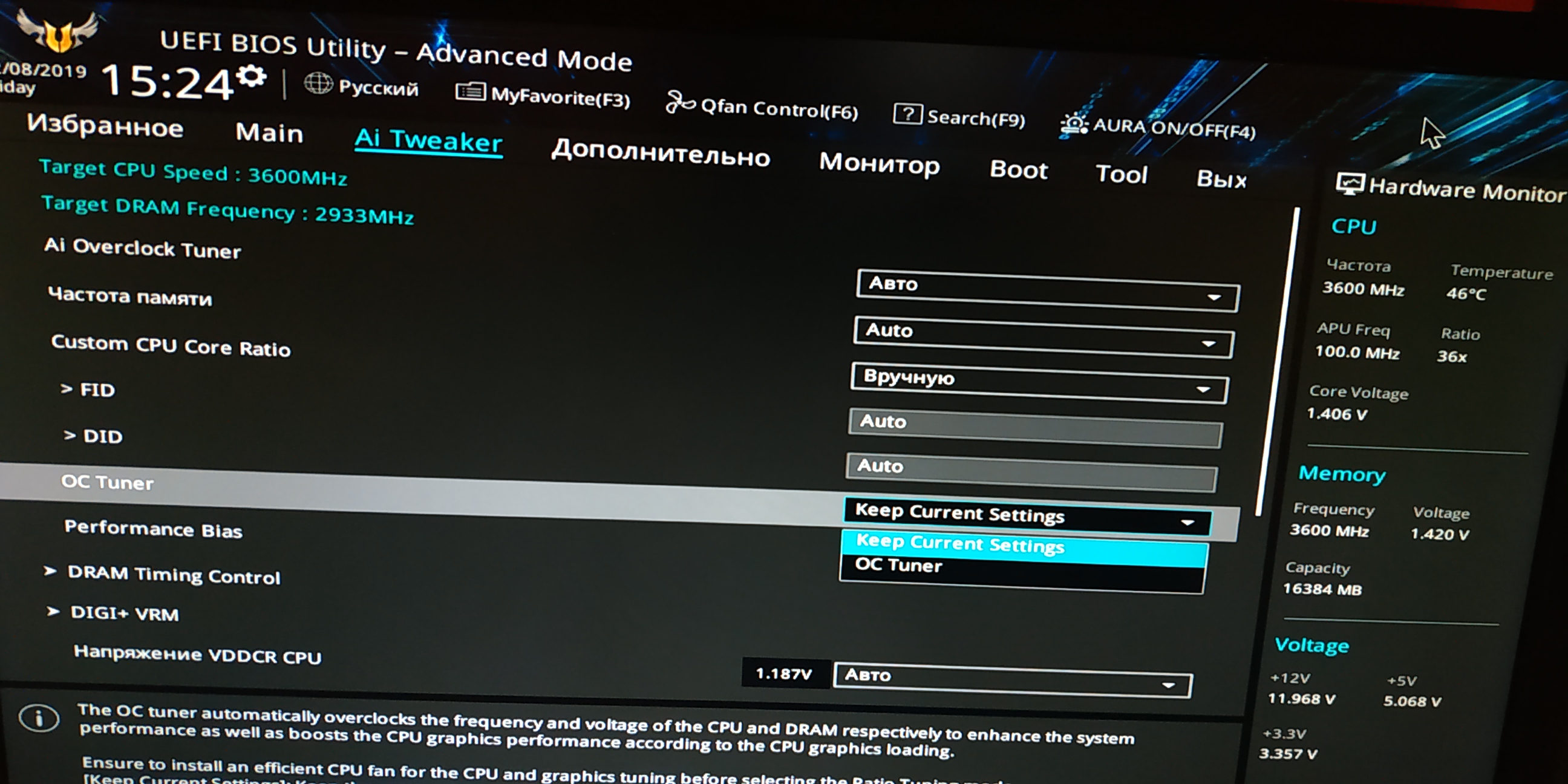 и ещё ниже спойлер OC TUNER, там либо мануал либо то что написано по дефоту, пробовал и так и так - ничего не меняется. новые пункты не добавляются.