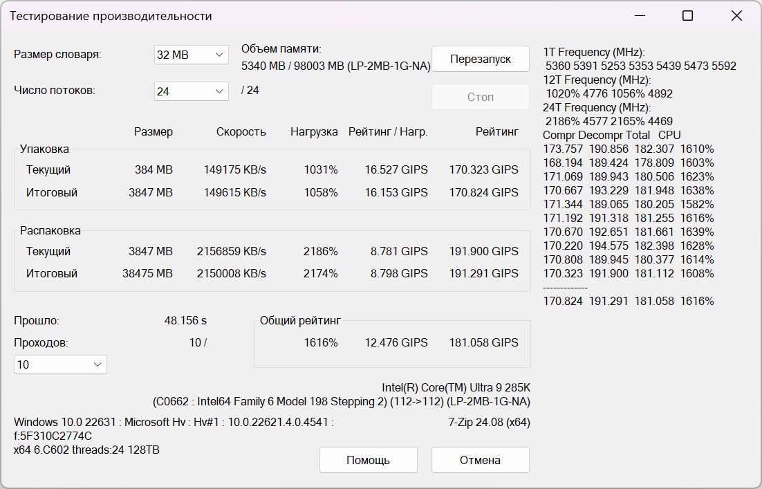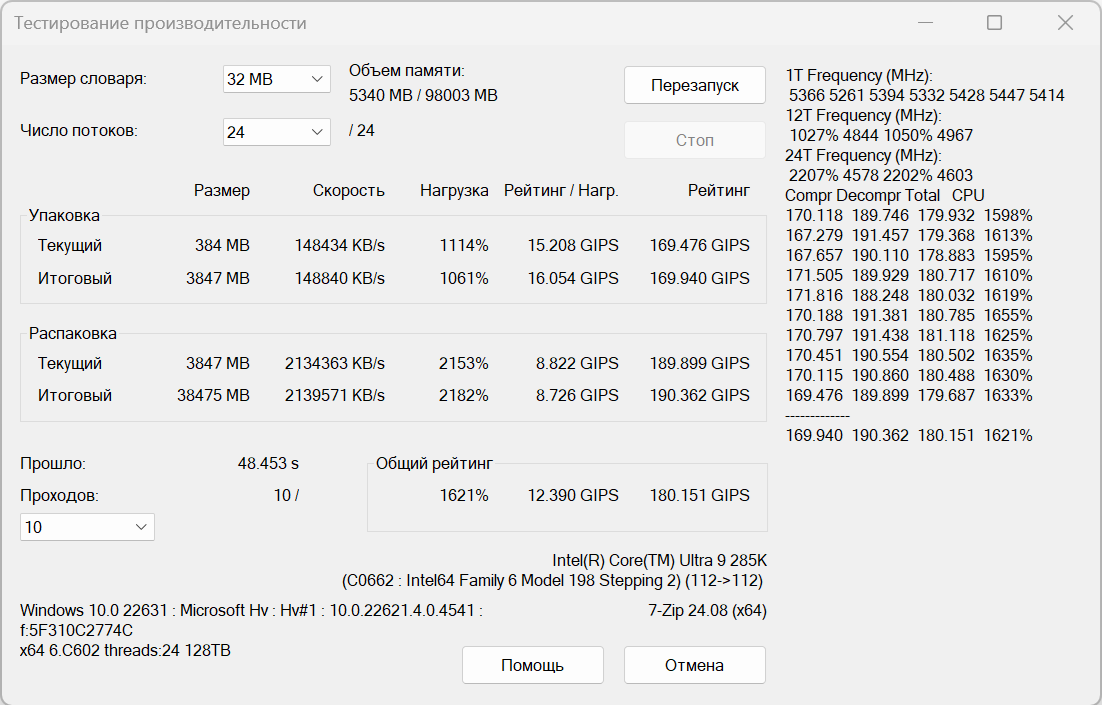 Прогнал 7-Zip, не пойму - норм результат? На какое значение смотреть?