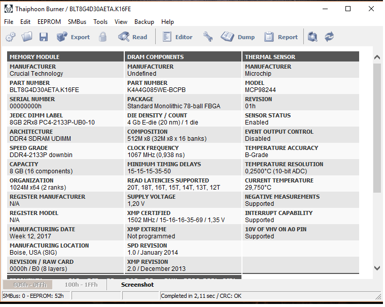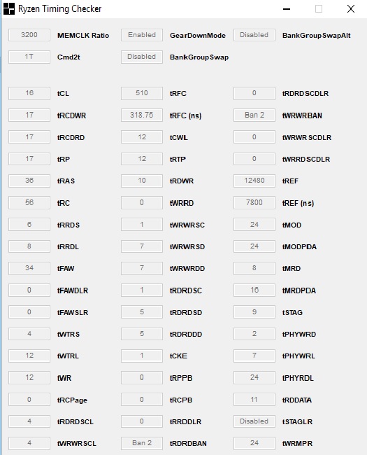 Остальное он считывает вроде верно , кроме tRRD_L tRRD_S , возможно FAW еще.