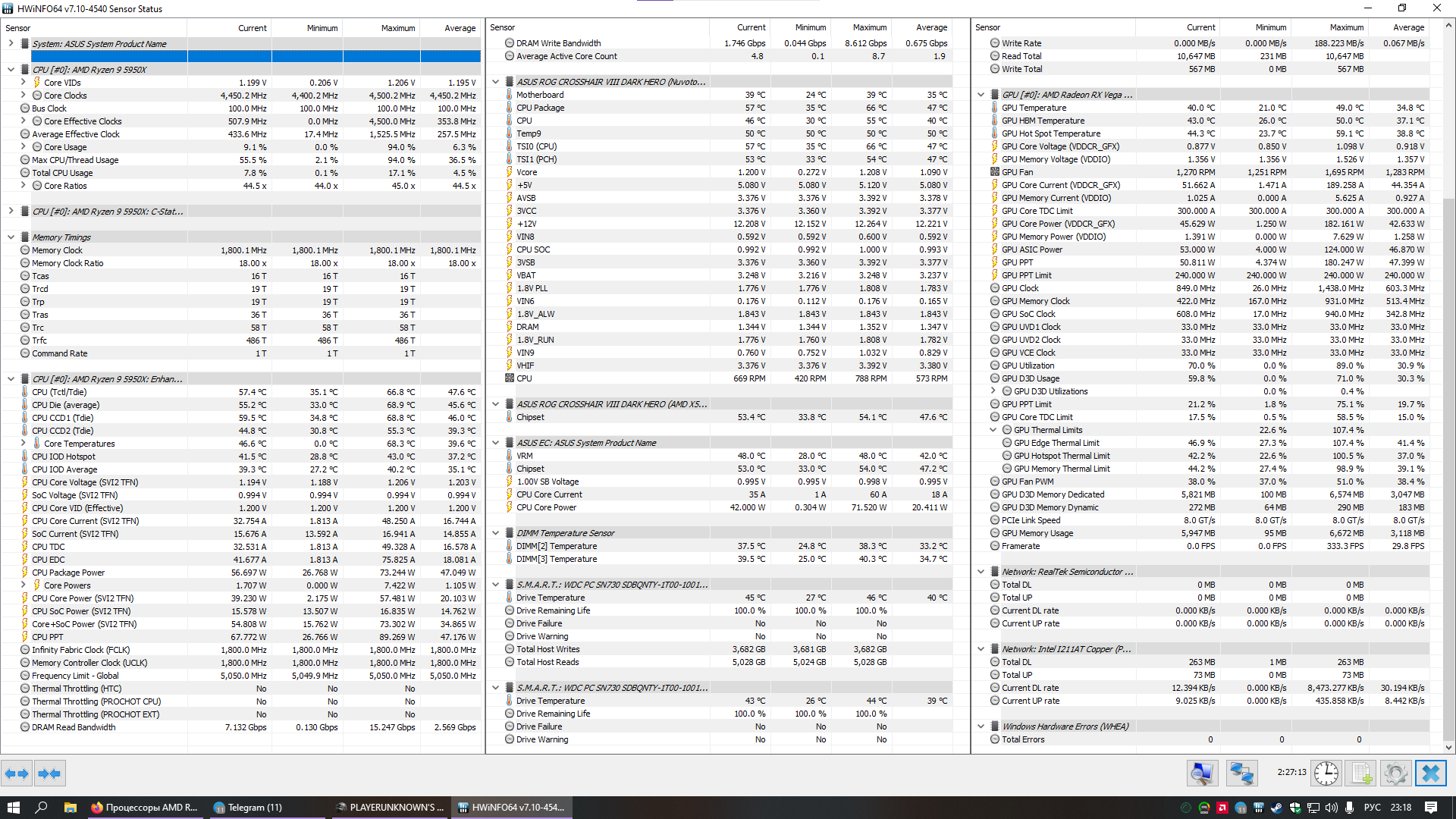 Делюсь болью и страданиями! В начале 2021 года купил я 5950X и материнку ASUS X570-I всё настроил спустя пару месяцев, радовался. Спустя пол года начались приколы, за неделю разок проскакивали ошибки WHEA Logger, по одной, потом через пару месяцев вообще критически ошибки WHEA Logger начали появляться и ребуты, причём под малыми нагрузками при просмотре видео или ютубчика, или при свёрнутой игре на паузе. После перепаковки водоблока на видюхе остались термопрокладки Gelid GP Ultimate, разобрал материнку, поменял термопрокладки на VRM, на обратной стороне VRM и на чипсете и вуаля, всё как рукой сняло. Напряжения CLDO VDDP, VDDG IOD, VDDG CCD получилось снизить до старых пределов. Какая связь между WHEA и охлаждением материнки я ХЗ. Но изначально начало помогать тупо обдув вокруг сокета 120мм вентилем. Теперь и без вентиля работает. Посмотреть бы на материнку в тепловизор.