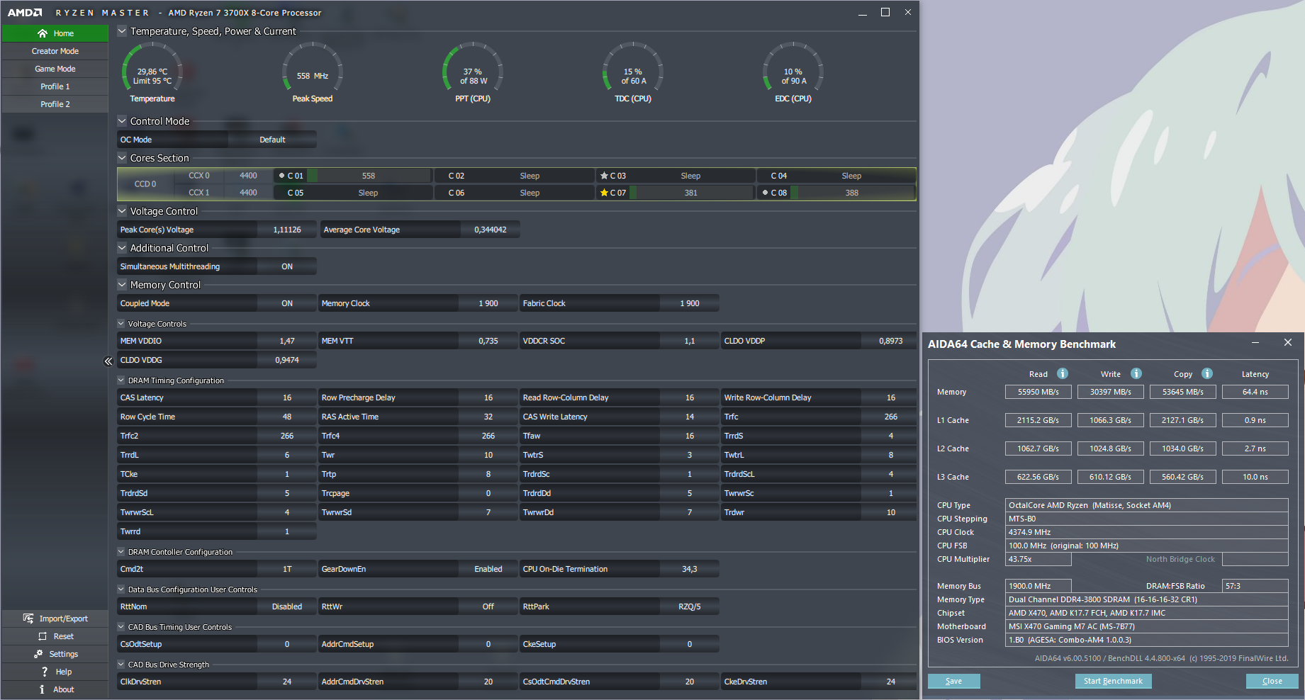 До прояснения ситуации с охлаждением оставлю OC-Tuner 3950 под Гамм-ой- наиболее акустически комфортный режим, намного комфортнее, чем 3950 или 3600-4200 под С14. Конкретно для Black Desert на 3950 можно было бы и бокс оставить- тоже вполне неплохо справляется, но звучит выше и чуть громче, чем ГаммаХХ. Ну и в Дивижн 2 или Дестини 2 бокс, скорее всего, будет слишком громким. А я старый, гадкий, мерзкий, ленивый, избалованный комфортом и тишиной. На автобусте постоянные подвывания реально выбешивают, а на постоянных 3950 звук ровный, повышение-понижение оборотов тоже плавное. Применительно к паре-тройки нужных мне игр - заметной потери производительности не вижу. Будем надеяться на новые, адаптированные к 3***, кулера.